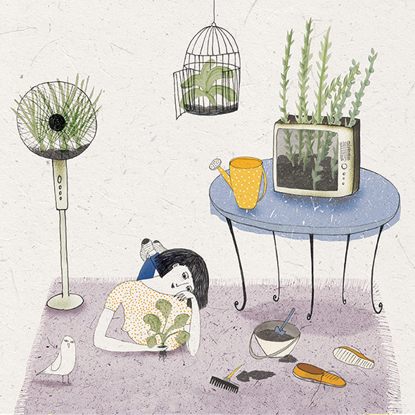 Originaria di Palermo, si trasferisce a Roma dove studia ed è tra le 7 fondatrici del collettivo di graphic design “Studiortica“, per poi fare ritorno alla sua terra natale e iniziare a lavorare come illustratrice freelance. Nelle sue tavole mescola vari stili e tecniche, dal disegno alla pittura, restituendoci spaccati di vita quotidiana ma anche immagini concettuali e surreali. Nell’immaginario di Alessandra la figura femminile ha un ruolo centrale, così come il rapporto con il proprio corpo e con la natura, impersonificata da piante rigogliose, scorci di mare e piccoli animali curiosi. Elementi che ritroviamo in toto nella sua ultima illustrazione, quella che ha voluto dedicare a tutti i lettori di Picame.