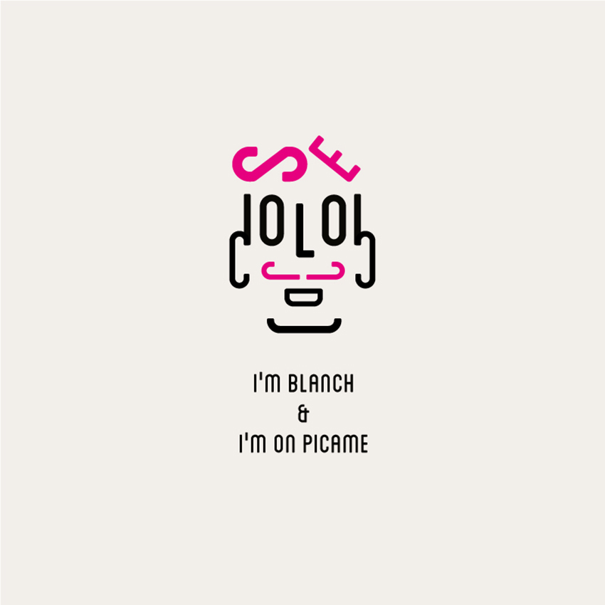 In ultimo c’è il Blanch, font più recente creato da Atipus per Lost Type, che tanto per intenderci è quello del logo di PICAME. Carlo lo ha preso e ci ha ricavato un simpatico hipster con un bel paio di baffi magenta.