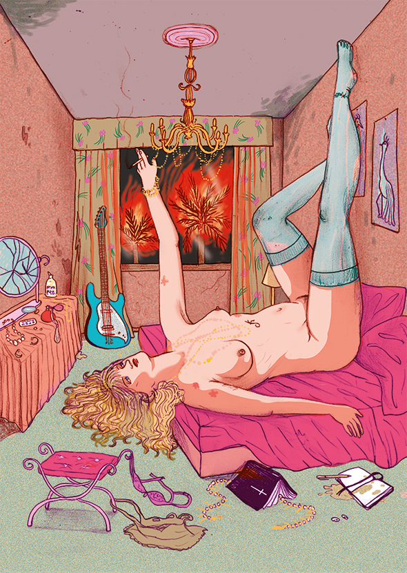 Tra i suoi ultimi lavori troviamo il ritratto di Courtney Love realizzato per il progetto Rock Motel (di cui vi abbiamo parlato poco tempo fa) e l’header che ha realizzato appositamente per PICAME. Se poi volete conoscerla da vivo la trovate Sabato 6 Giugno sul palco del MI FAI a Milano, dove sarà impegnata in un live painting.