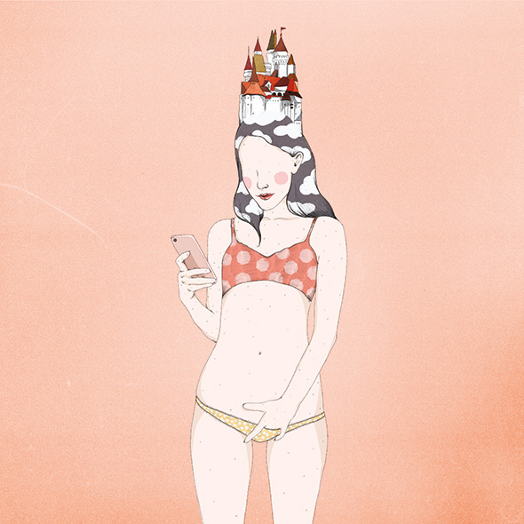 Fedeli al mood tipico del viaggiatore mentale, le illustrazioni di Giulia sono profondamente concettuali, talvolta autobiografiche, fatte di linee sottili, colori caldi ed ampi spazi lattiginosi. La figura umana è centrale, in particolare quella femminile, così come il ruolo del sentimento, del sogno e del ricordo. E proprio quest’ultimo è il tema che ha scelto per l’header che ha ci ha regalato:
