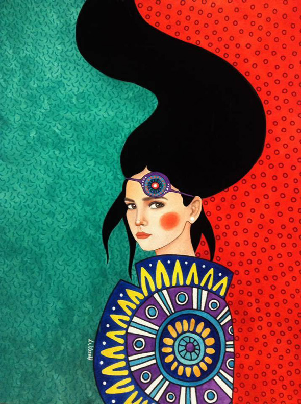 Hülya Özdemir non racconta molto di sé online ma le sue splendide donne parlano anche per lei. Sappiamo però che vive ad Oslo, che è un’artista autodidatta e che è nata ad Istanbul, la città sospesa fra Oriente e Occidente.