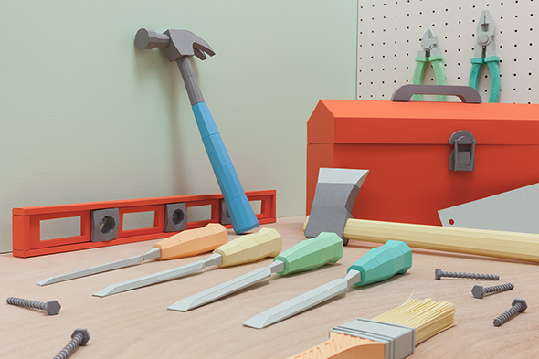 La rozzezza degli utensili da bricolage incontra la delicatezza di un materiale leggero e versatile come la carta nel progetto sperimentale del team di creativi francesi REVERBERE. Ciò che colpisce maggiormente è l’estrema cura per i più piccoli dettagli, che solitamente vengono trascurati quando si parla di paper sculpture. Dalla filettatura delle viti ai crini del pennello, dalle zigrinature sui manici delle pinze alle venature del legno nulla è stato trascurato. Paper Toolbox è un progetto di self promotion che colpisce nel segno ed sta già facendo il giro del web.
