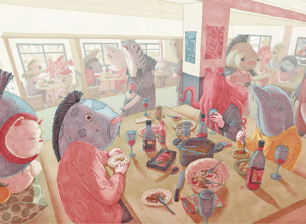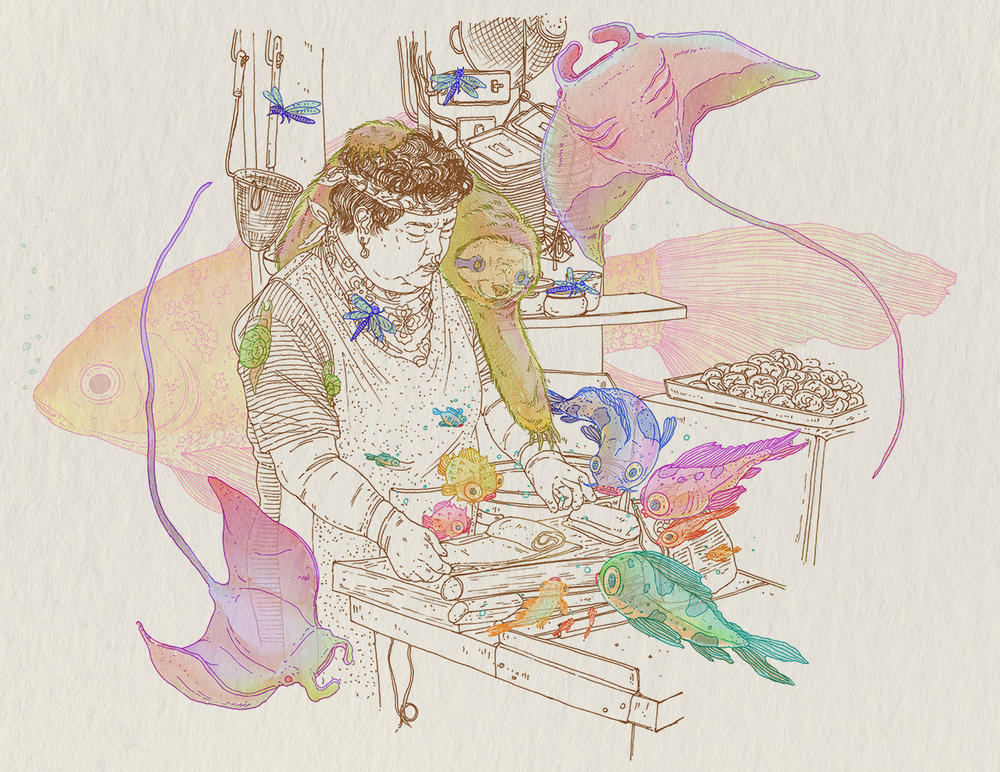 In precedenza hai definito le atmosfere oniriche dei tuoi disegni un mondo “dove nessuno è mai pienamente umano, e nessuno è mai pienamente compreso”. Come è nata l’idea di coinvolgere il popolo del mare?