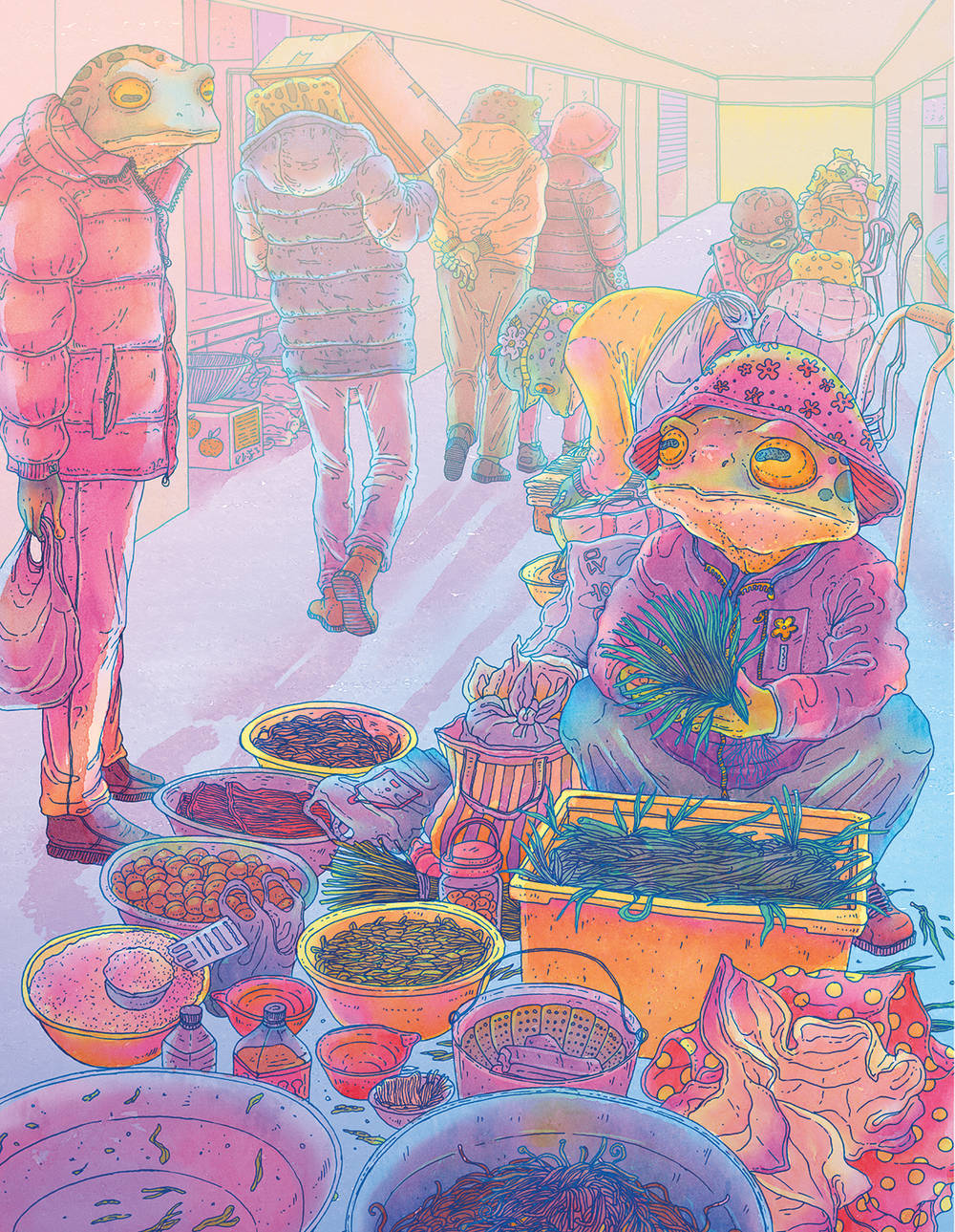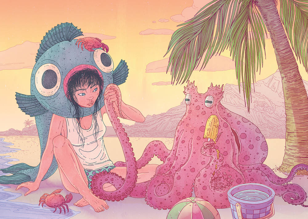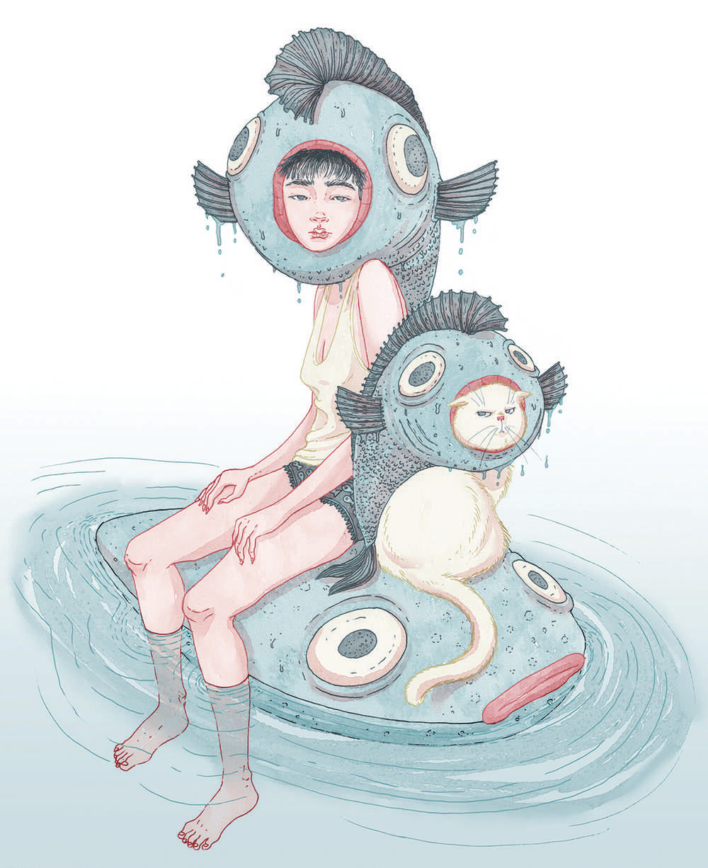 Sto cercando di ampliare di più le mie tematiche, tuttavia le creature marine restano al momento le mie preferite! Ultimamente ho anche interesse verso rane e anfibi. Non so ancora esattamente perché, ma in Corea sento che le persone sono più anfibi che pesci, quindi credo che la comparsa di altre creature sia dovuta al fatto che ultimamente ho viaggiato molto in Corea del Sud. Per quanto riguarda l’Inghilterra al momento non ho ancora avuto alcuno stimolo artistico… forse perché vedo l’Inghilterra più come ad un posto in cui lavorare, che ad uno in cui venire ispirata. Non credo resterò in Inghilterra ancora a lungo.
