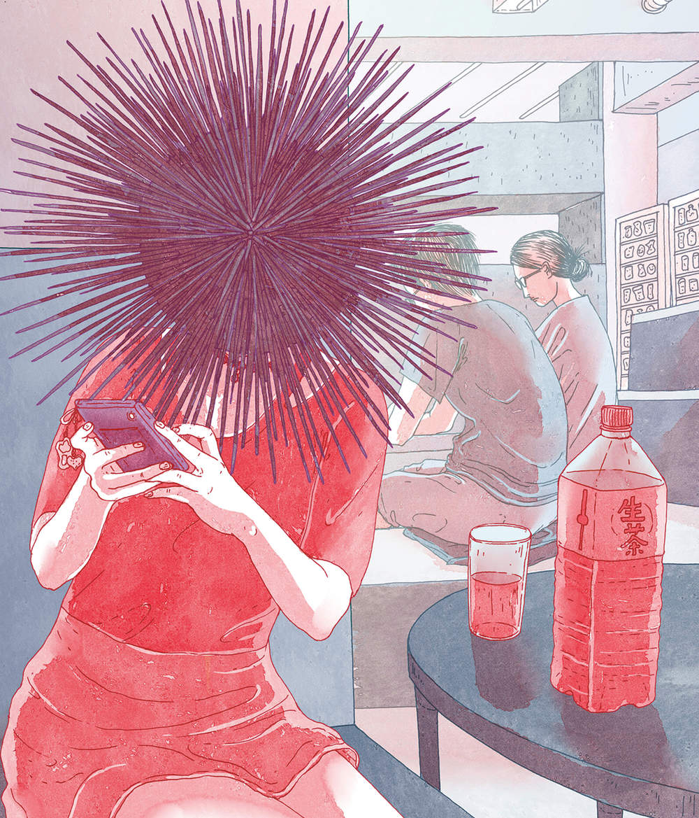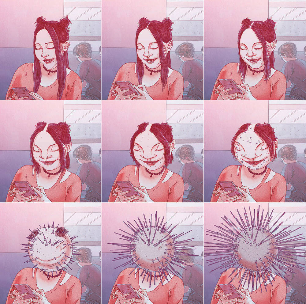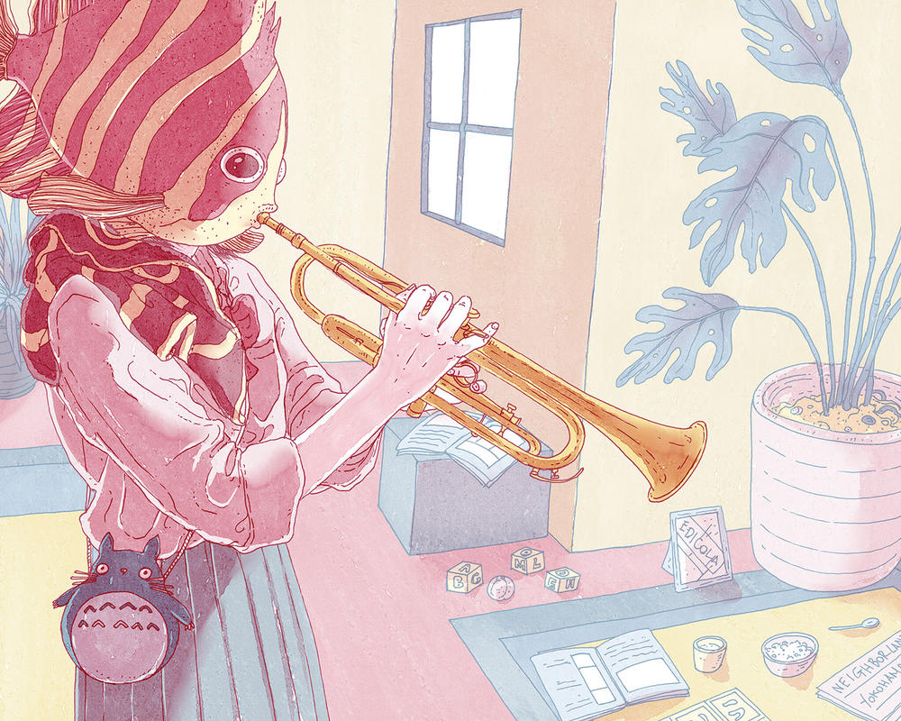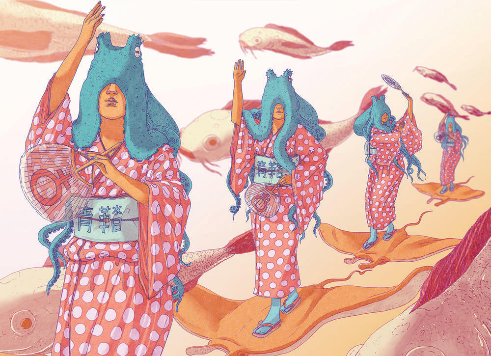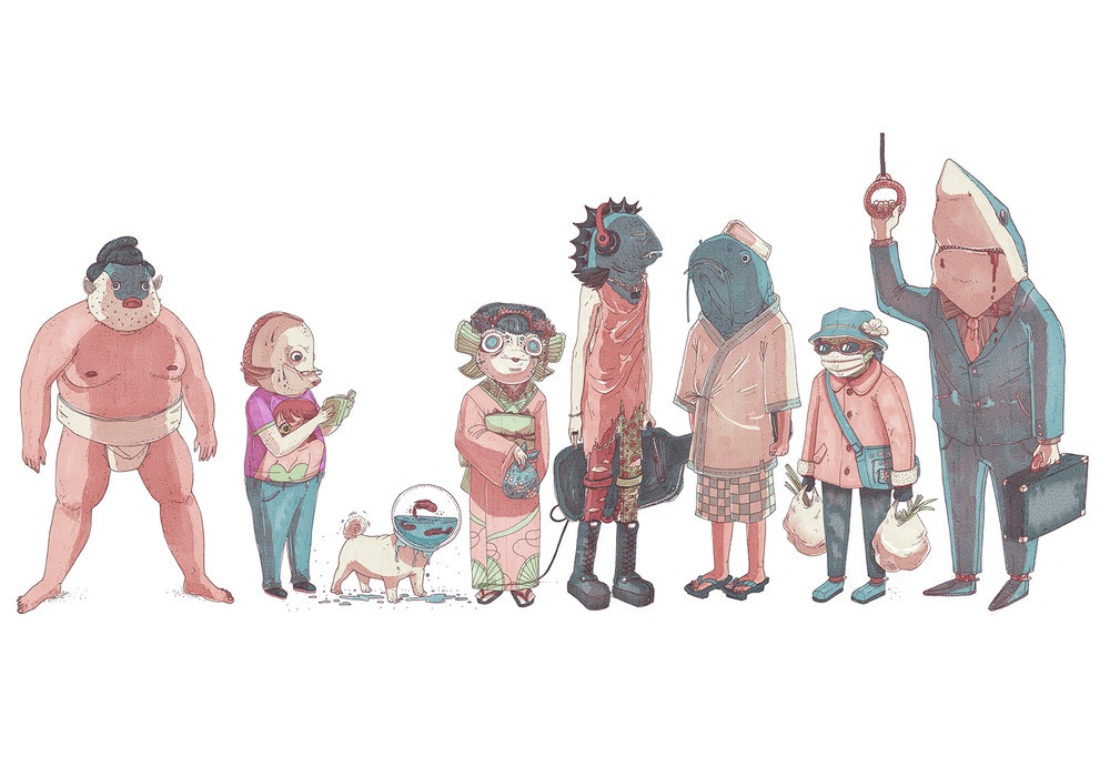 Ho iniziato a sviluppare questa poetica mentre ero in Giappone, anche se inconsciamente. Il Giappone è un arcipelago ed ha una vastissima cultura basata sul mare e sulle creature che lo abitano. Lì ho iniziato a disegnare tanti pesci, che sono poi diventati characters e raffigurazioni un po’ grottesche di persone che incontravo per strada. Durante il mio Master in Visual Communication alla Royal College of Art, ho iniziato ad indagare sul perché disegnassi esseri non propriamente umani. Sono arrivata così alla conclusione che il non potermi esprimere bene in Giappone ha creato una barriera comunicativa tra me e chi mi circondava, trasformando tutti in creature fantastiche. Non capire cosa gli altri mi dicessero, o semplicemente non capire le emozioni e le intenzioni di chi mi circondava (e mi circonda tuttora in qualsiasi città del mondo) ha dato origine alla mia poetica. Anche io sono non-umana per te che mi stai leggendo!
