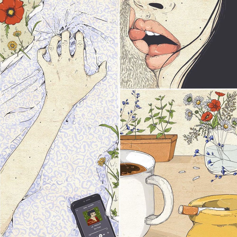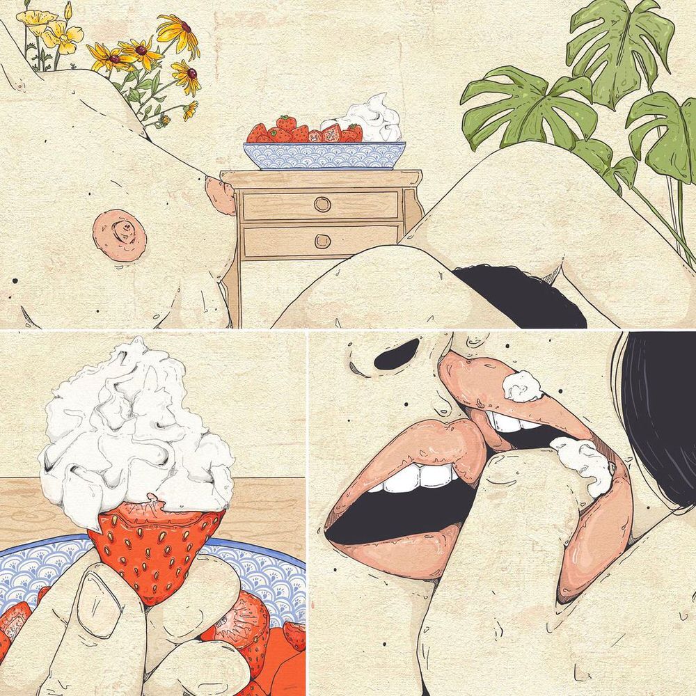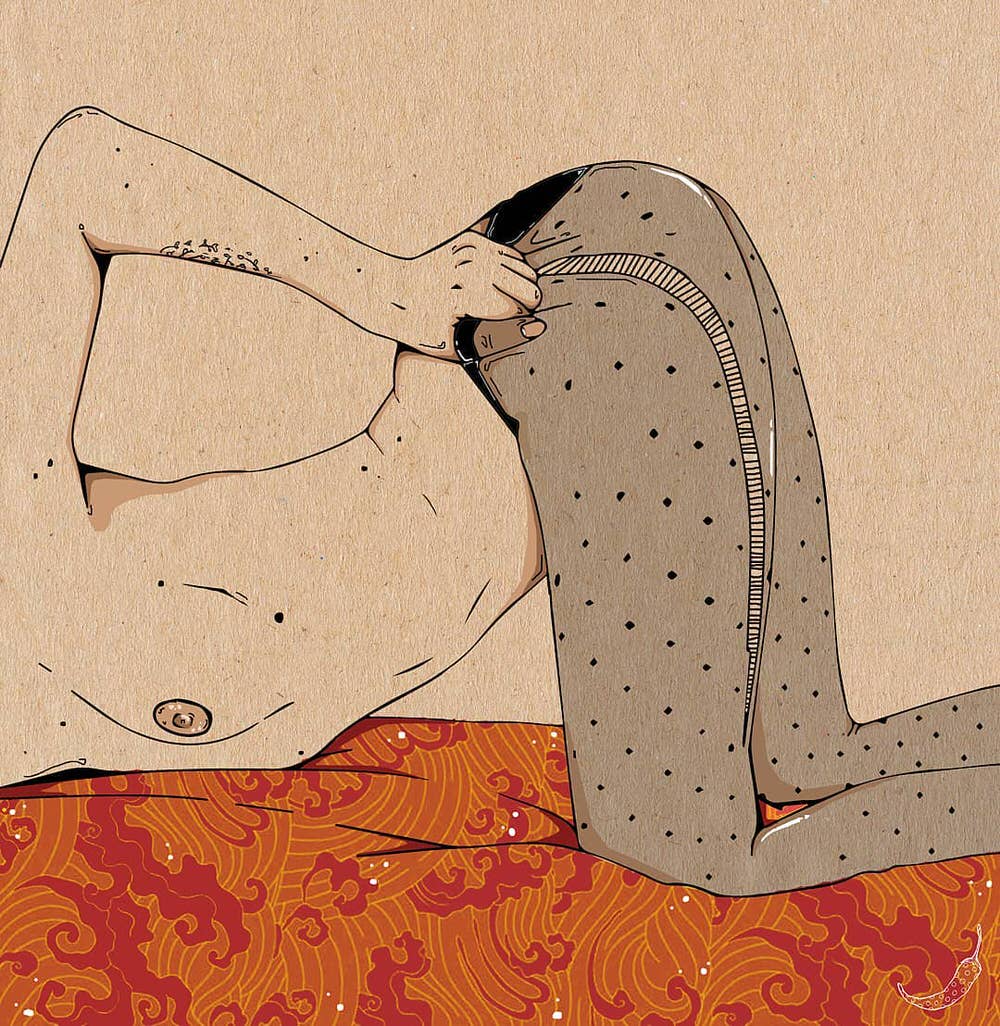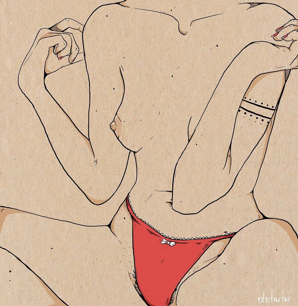 La missione, forse inconsapevole, di Ester Tartar è proprio quella di riappropriarsi del punto di vista femminile nella rappresentazione più forte (ma anche vera) di quegli atti di estrema intimità di ogni donna che sono la masturbazione e i rapporti fisici con il/la partner. Il tatuaggio sul braccio della protagonista svela che spesso le illustrazioni sono autoritratti dell’artista stessa.