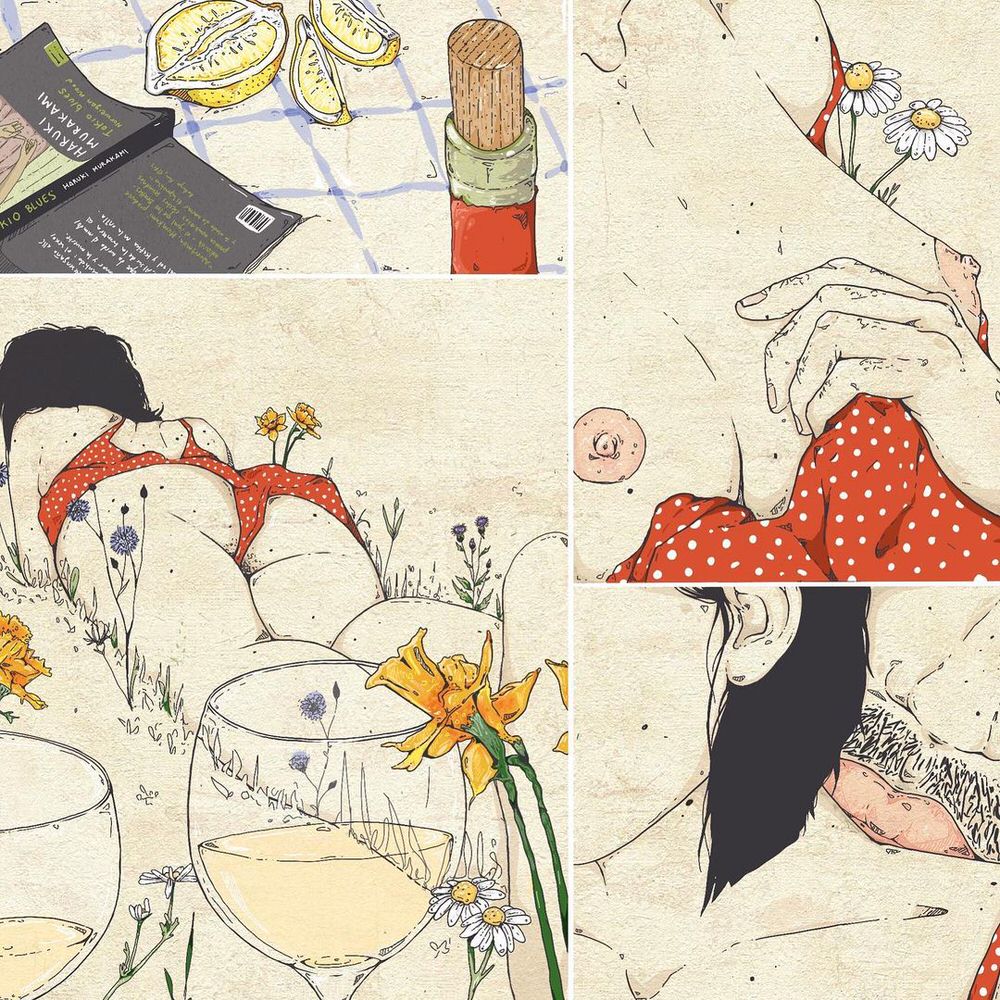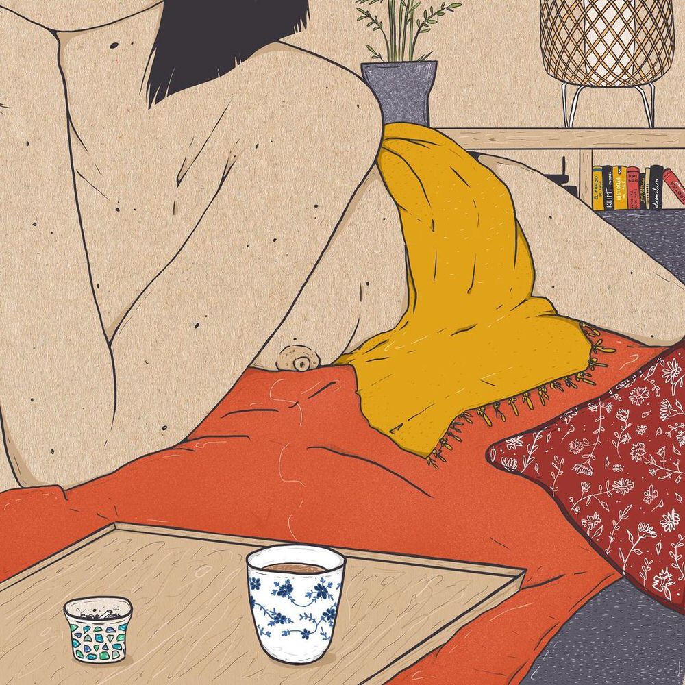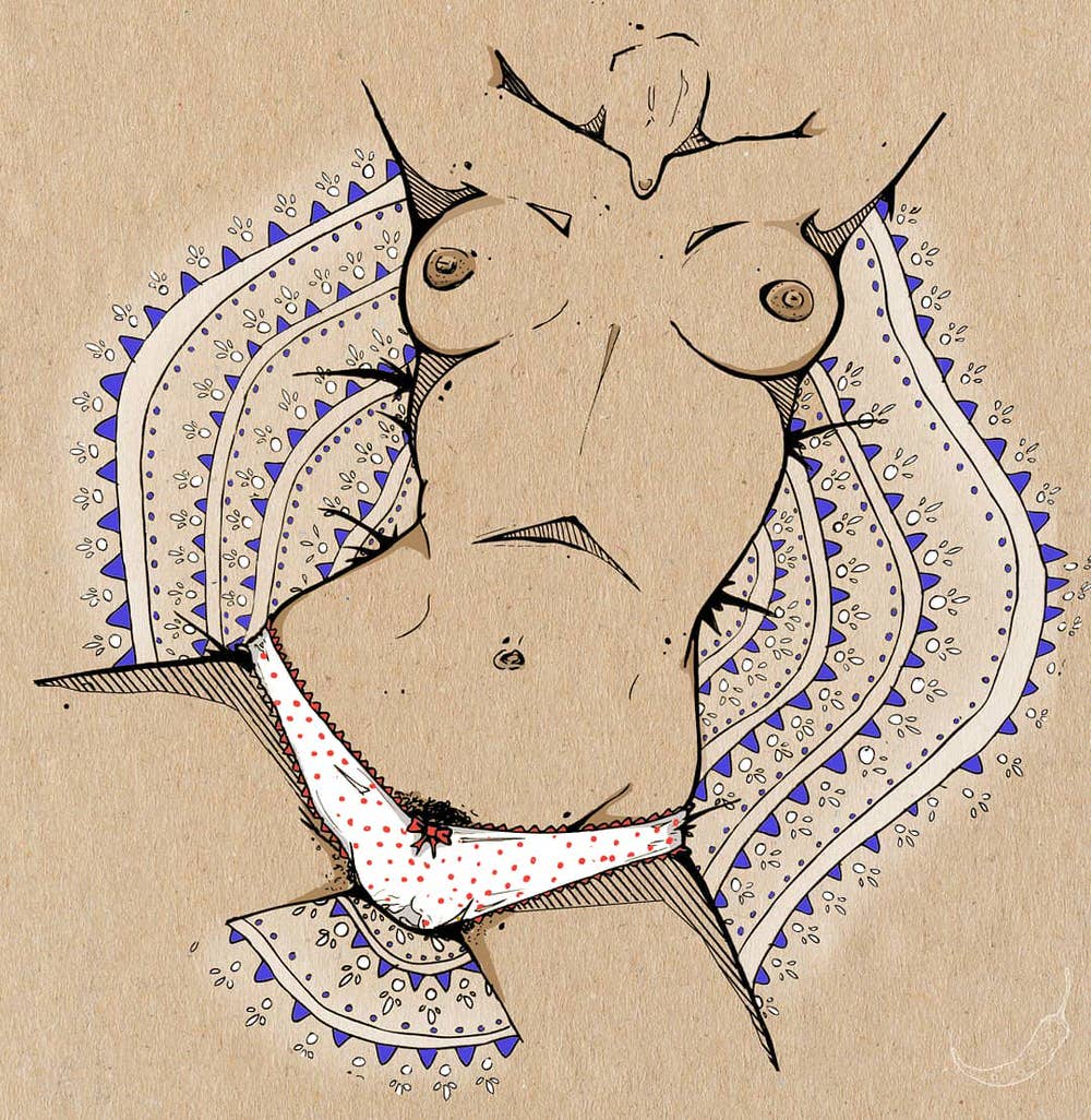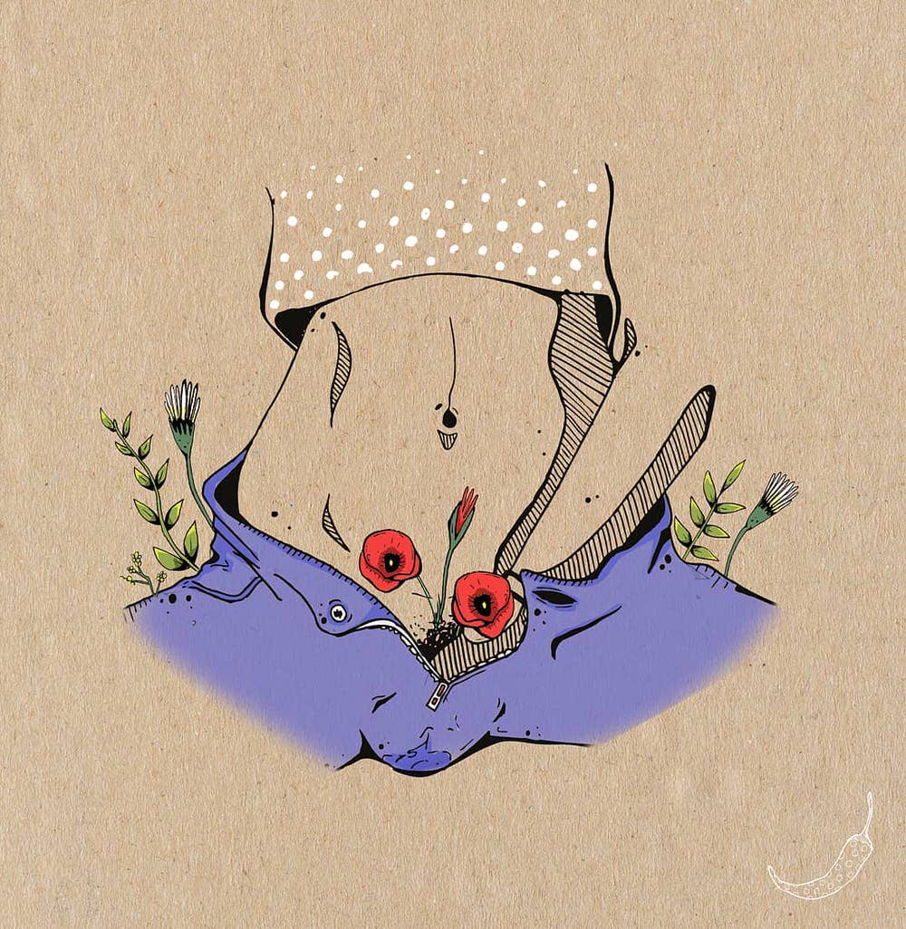 La missione, forse inconsapevole, di Ester Tartar è proprio quella di riappropriarsi del punto di vista femminile nella rappresentazione più forte (ma anche vera) di quegli atti di estrema intimità di ogni donna che sono la masturbazione e i rapporti fisici con il/la partner. Il tatuaggio sul braccio della protagonista svela che spesso le illustrazioni sono autoritratti dell’artista stessa.