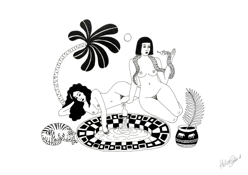 Dopo aver vissuto la propria giovinezza in giro per mezzo mondo Helena è tornata nel Regno Unito dove ha studiato illustrazione alla Falmouth University in Cornovaglia. Attualmente vive a Berlino. Oltre che artista è anche tatuatrice, (qui il profilo Instagram dedicato). Potete conoscerla meglio in questa video-intervista e scoprire gli altri suoi lavori di illustrazione e pittura sul suo sito e su Instagram.