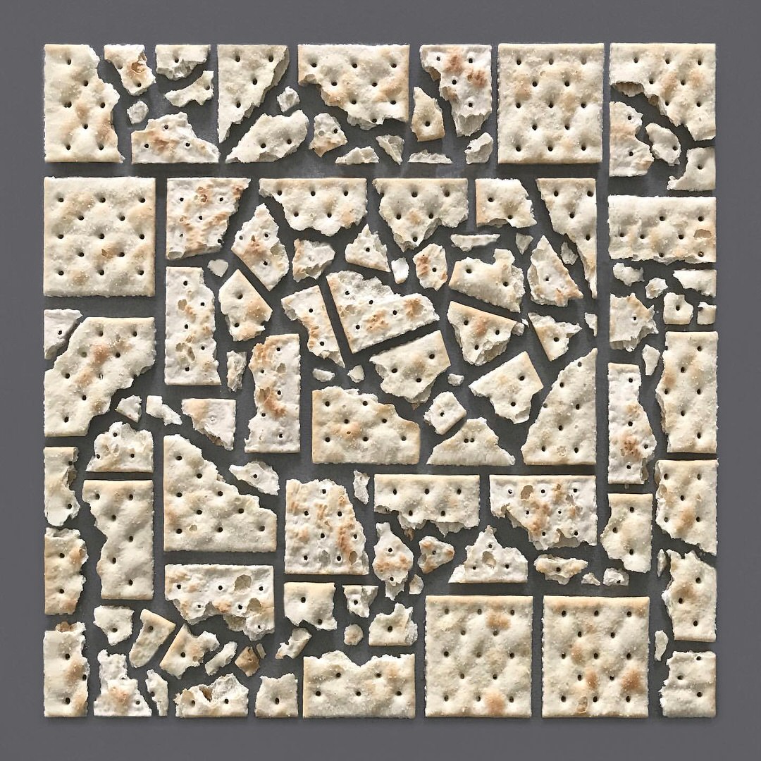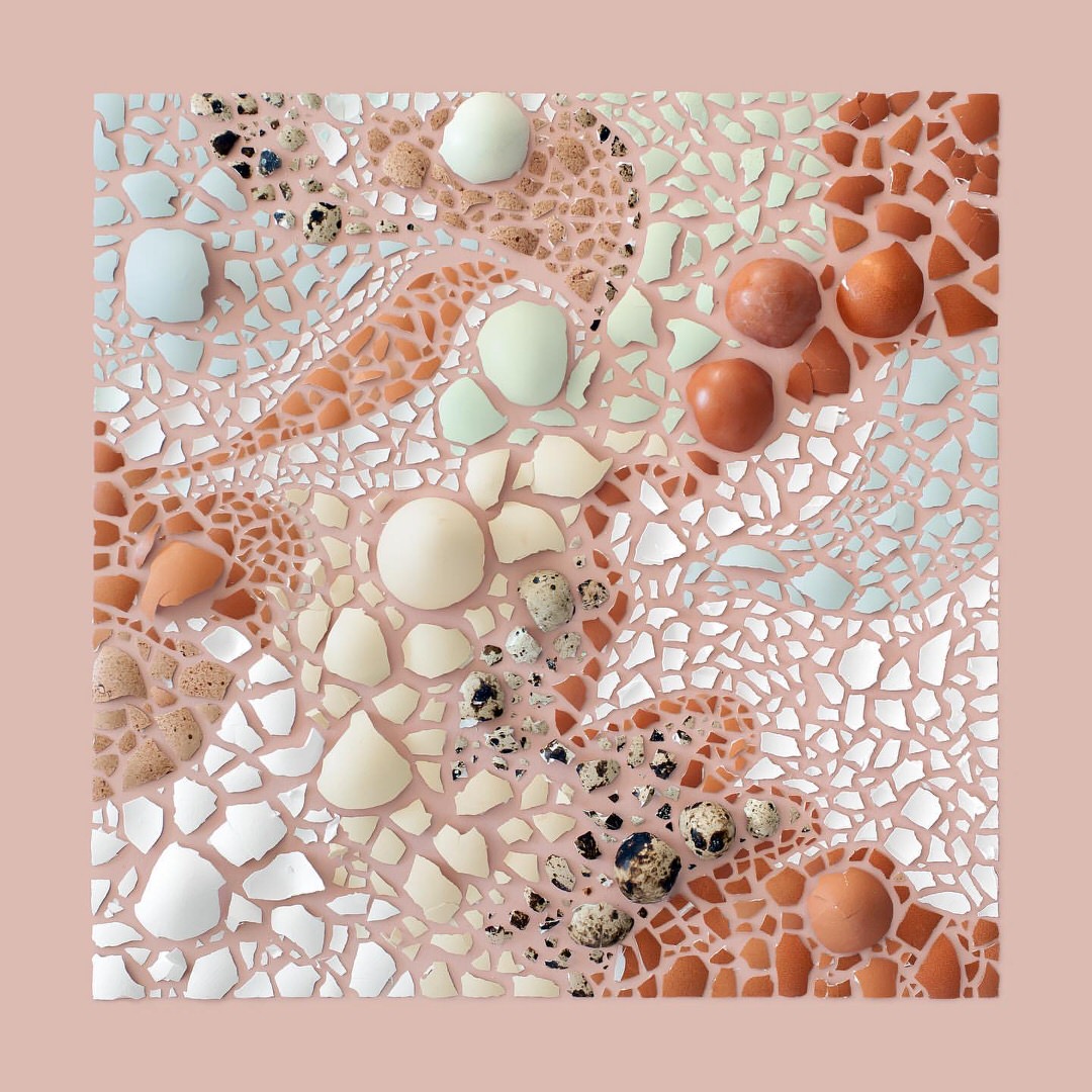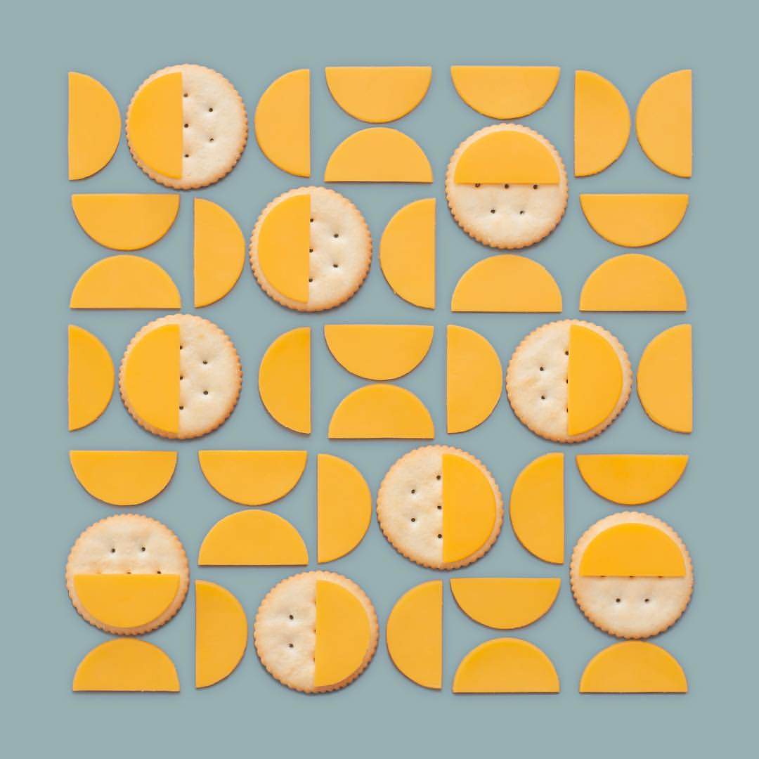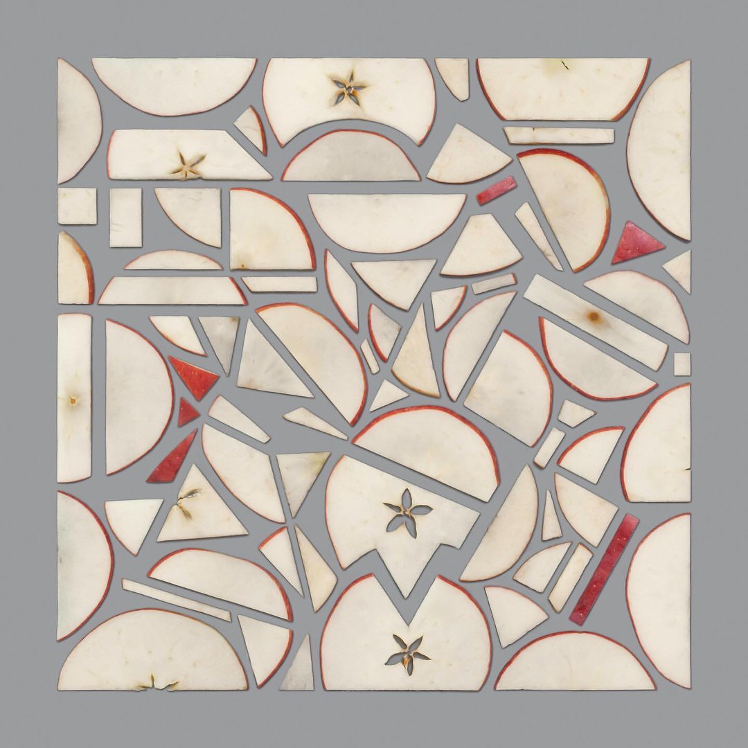 Kristen Meyer, creativa americana di base a New Haven, prende gli oggetti più disparati, spesso dalla forma irregolare, e li riordina creando ordinatissime composizioni geometriche. Biscotti rotti, petali di fiori, frammenti di pietre o di gusci d’uovo, nelle sue mani diventano impeccabili ed armoniosi still-life che non sfigurerebbero in un prestigioso museo d’arte contemporanea. Persino una semplice mela, tagliata a sottili fettine, diventa bella come un quadro post moderno.