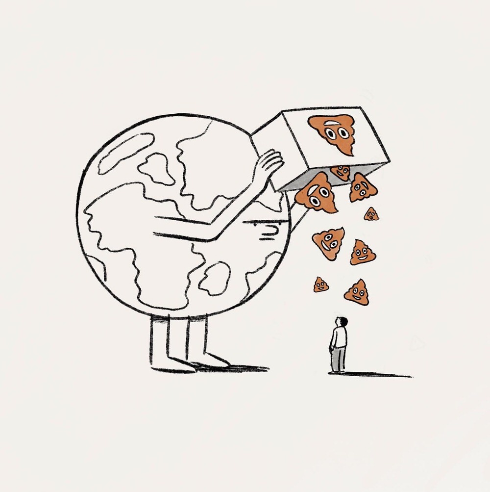 La leggerezza con cui è in grado di trattare ogni genere di argomento è rafforzata dalla semplicità delle sue illustrazioni, quasi sempre in bianco e nero su fondo neutro, talvolta accompagnate da un titolo o da una scritta che rafforzano il messaggio che Matt vuole trasmetterci.