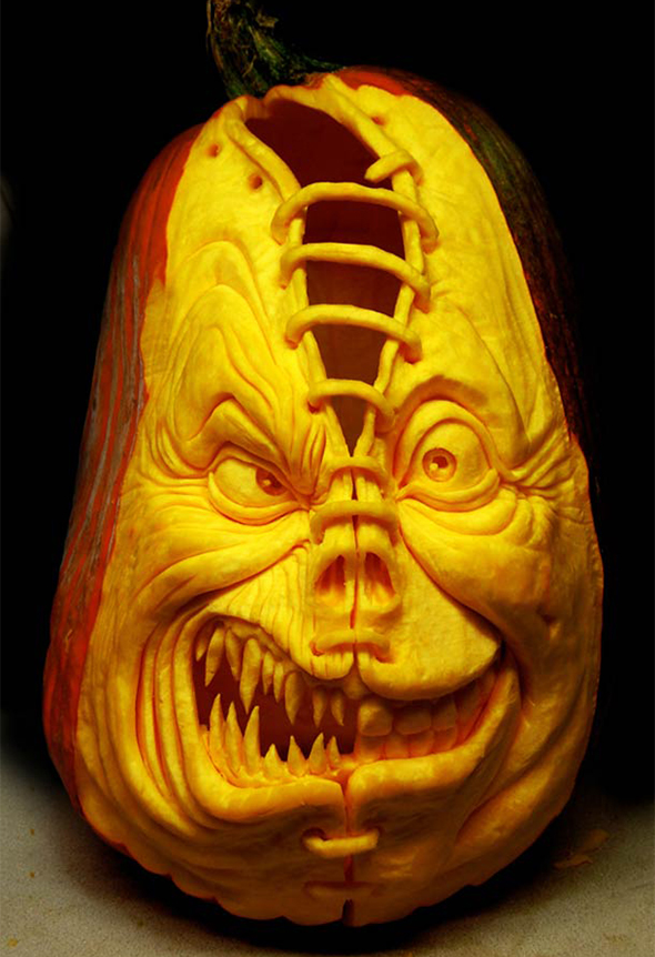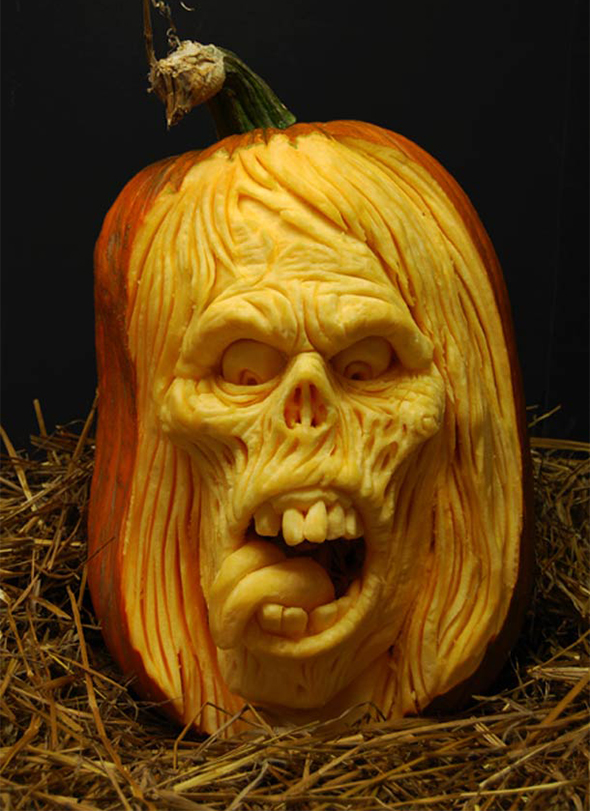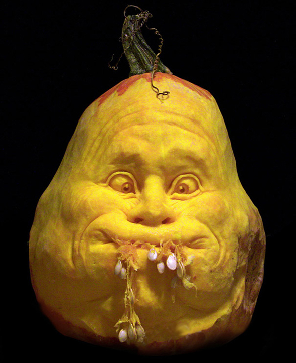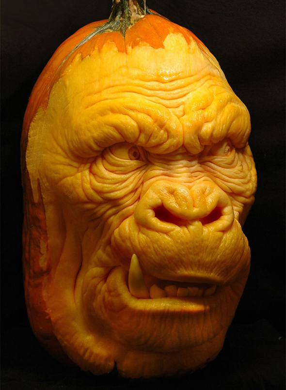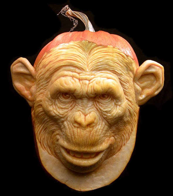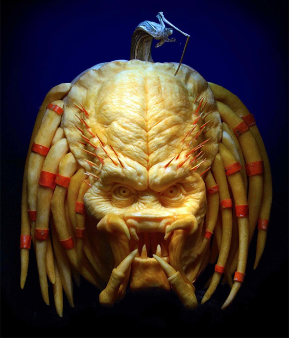 Ma qui non stiamo parlando di incidere due occhi triangolari e un ghigno grottesco. Ci troviamo di fronte a vere e proprie sculture, dal realismo impressionante. Soggetti classici dell’immaginario horror ma anche divagazioni nel mondo del cinema e nel regno animale. Se vi sentite all’altezza del compito potete sperimentare voi stessi questo insolito metodo scultoreo seguendo uno dei tutorial che trovate sul loro sito. Se iniziate subito potreste anche essere pronti per domani sera! 😉