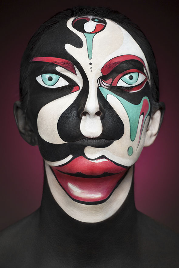Alexander Khokhlov is a young Russian photographer who explores the visually strength of paint and makeup in his 2D or not 2D series. Working with makeup artist Valeriya Kutsan and retouching expert Veronica Ershova, Khokhlov manages to capture women and men as pictorial reinterpretations of themselves, inspired by two-dimensional posters, comics, pop art, impressionist paintings, pixelated images, and cartoon characters.
