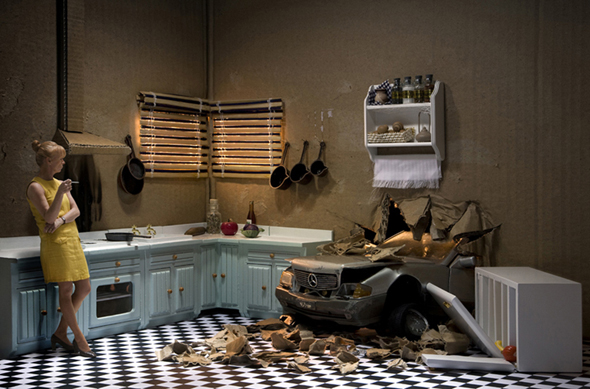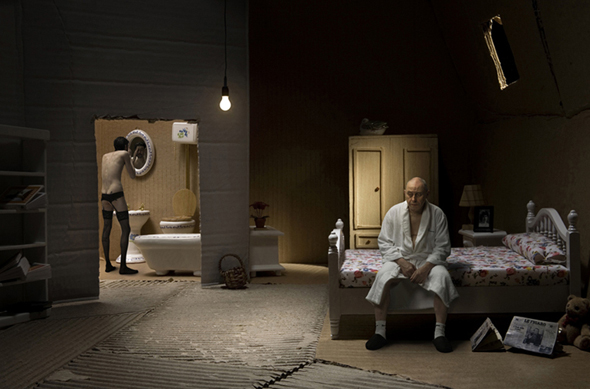 Box è un progetto nato dalla collaborazione tra Kevin Laloux e Maxime Delvaux aka 354 Photographers, un collettivo che realizza principalmente lavori di tipo cinematografico. Si tratta di una serie di scatti montati in postproduzione per ottenere un unica immagine. A prima vista, le foto sembrano essere semplicemente una messa in scena ed è solo in un secondo momento che, osservando attentamente gli scatti, notiamo le texture di cartone della parete ed il pavimento. Un cocktail di astuzia, fantasia, storie, immedesimazione.