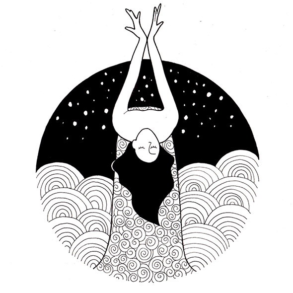 Tutto parte da un cerchio all’interno del quale prende vita un disegno interamente realizzato a mano con penne a china, che talvolta viene arricchito digitalmente col colore. I lavori che vedete sono tutti recenti e denotano un approccio concettuale molto profondo. Alcuni sono reinterpretazioni di opere famose, altri incarnano le più grandi passioni dell’uomo: l’amore, la passione, il sogno. Quest’ultimo in particolare lo ritroviamo nell’header che Carolina ci ha voluto regalare.