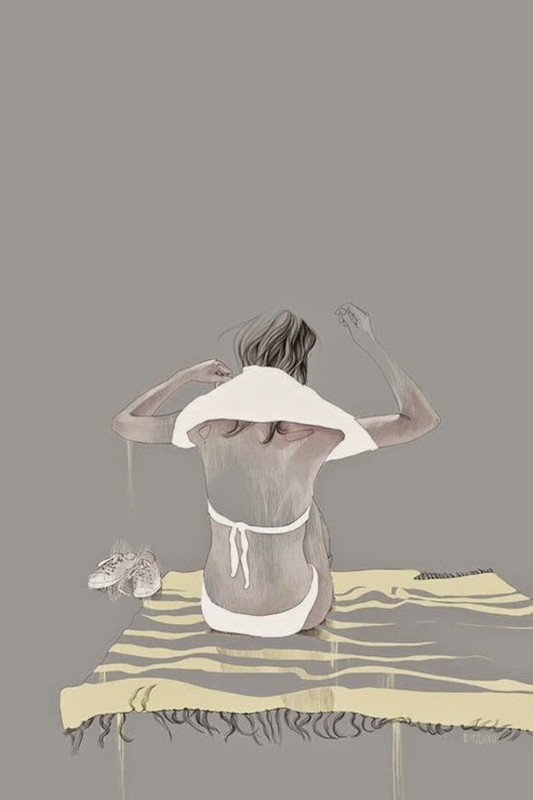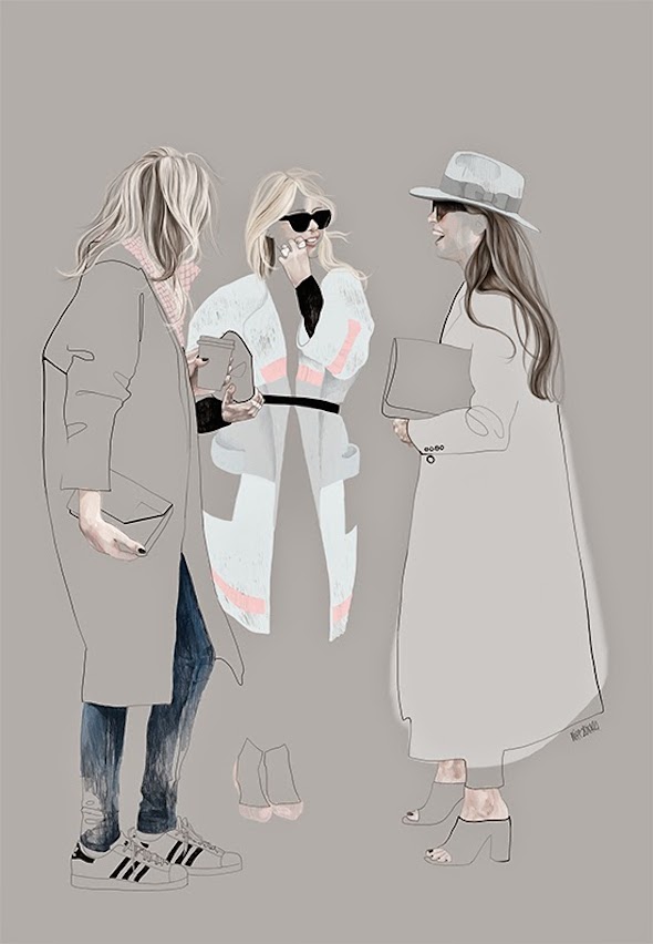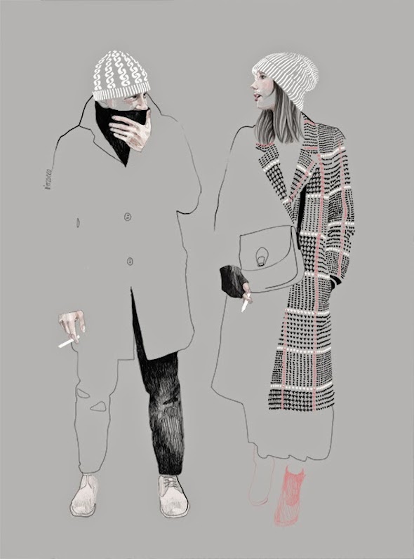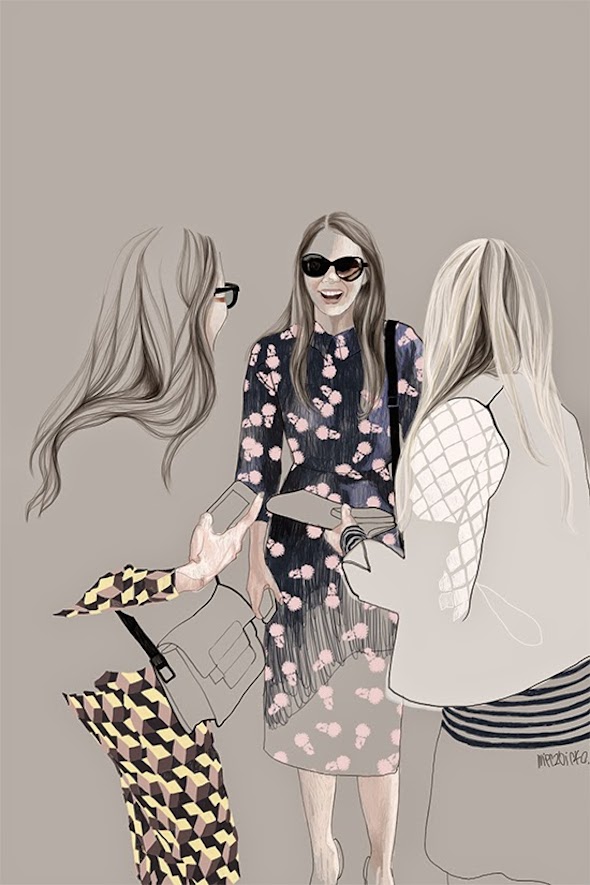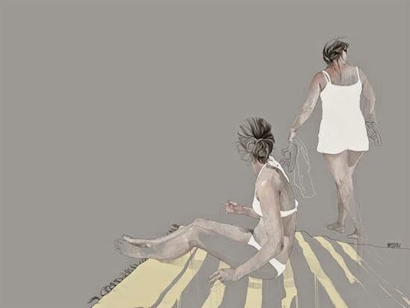 Agata Wierzbicka “is an interdisciplinary designer who works on a junction of architecture, design and art”. E dall’architettura trae probabilmente la capacità di costruire, attraverso un sapiente dialogo tra pieni e vuoti, scene di vita quotidiana terribilmente chic, animate da crocchi di eleganti fashionistas e ragazze sulla spiaggia. Olio, acrilico, pastelli usati realisticamente ma con spavalda libertà, mescolati all’uso del computer ed ad una nota color tortora a fare da sfondo dominante completano la ricetta della perfetta illustrazione fashion.