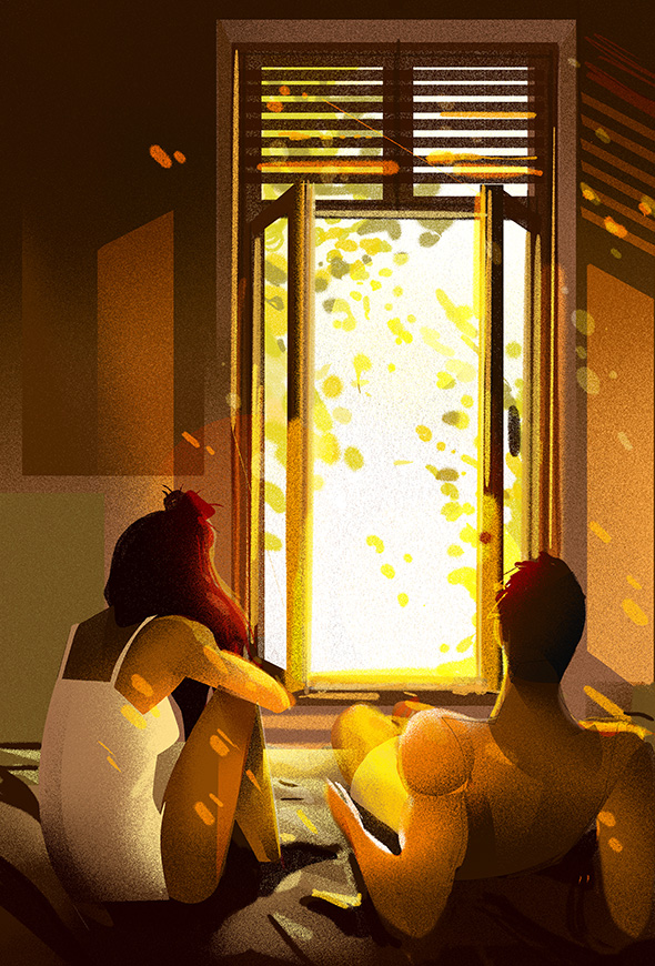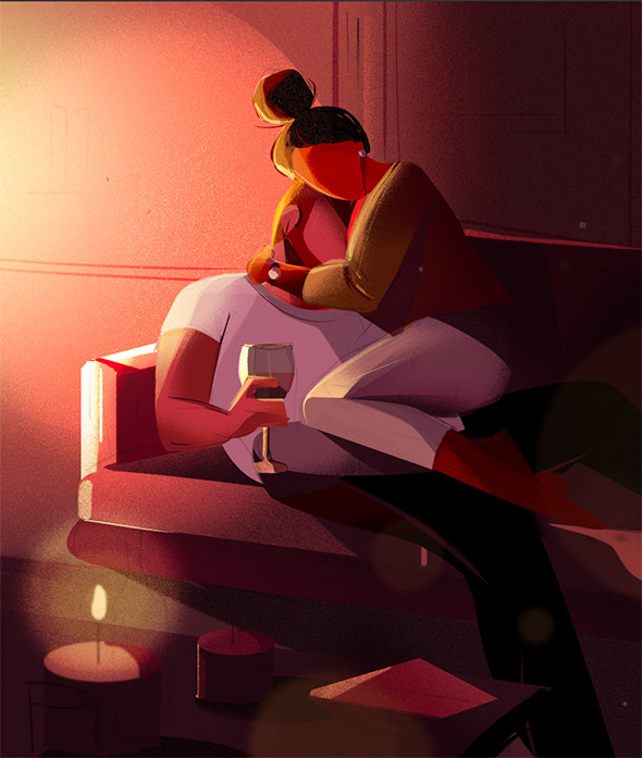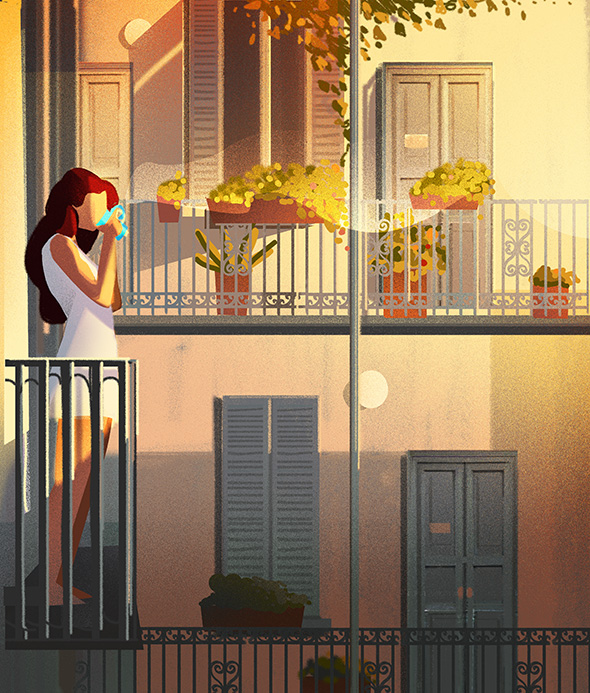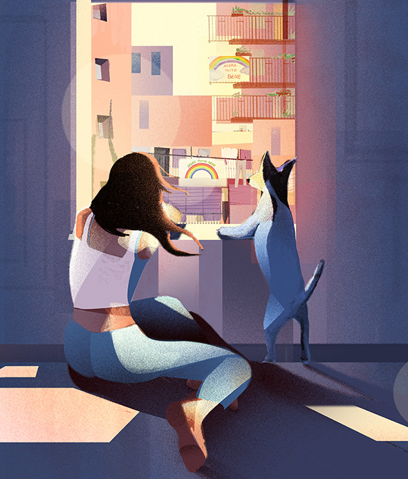 La mia terapia preferita è e sarà sempre disegnare. Ad esempio in questo caso, poter disegnare degli attimi e delle emozioni provate in questo strano periodo mi ha aiutato molto a tirarmi su di morale, come quasi uno sfogo. Per questo, nonostante i progetti lavorativi sento l’esigenza di ritagliarmi del tempo libero per disegnare per conto mio.