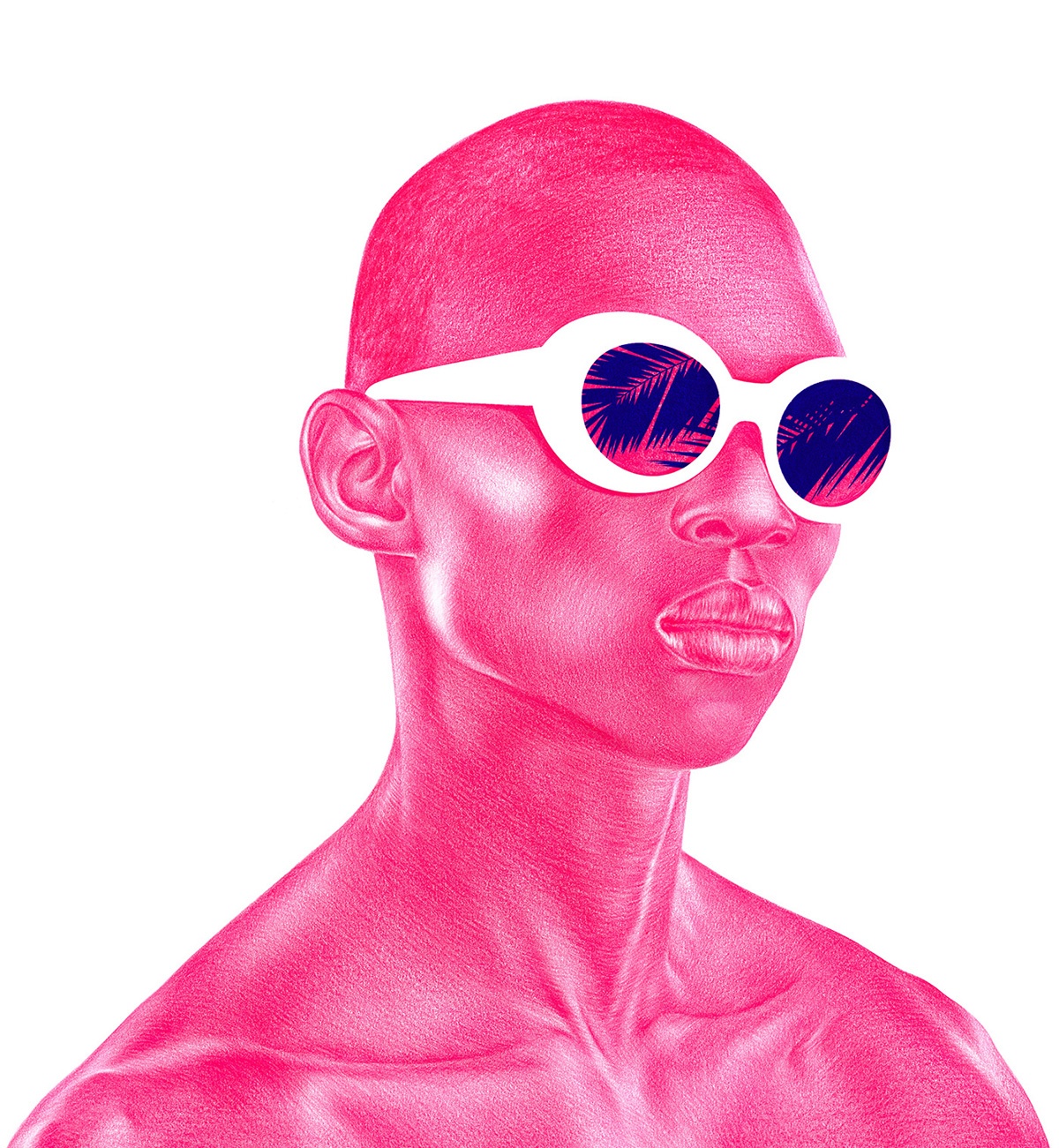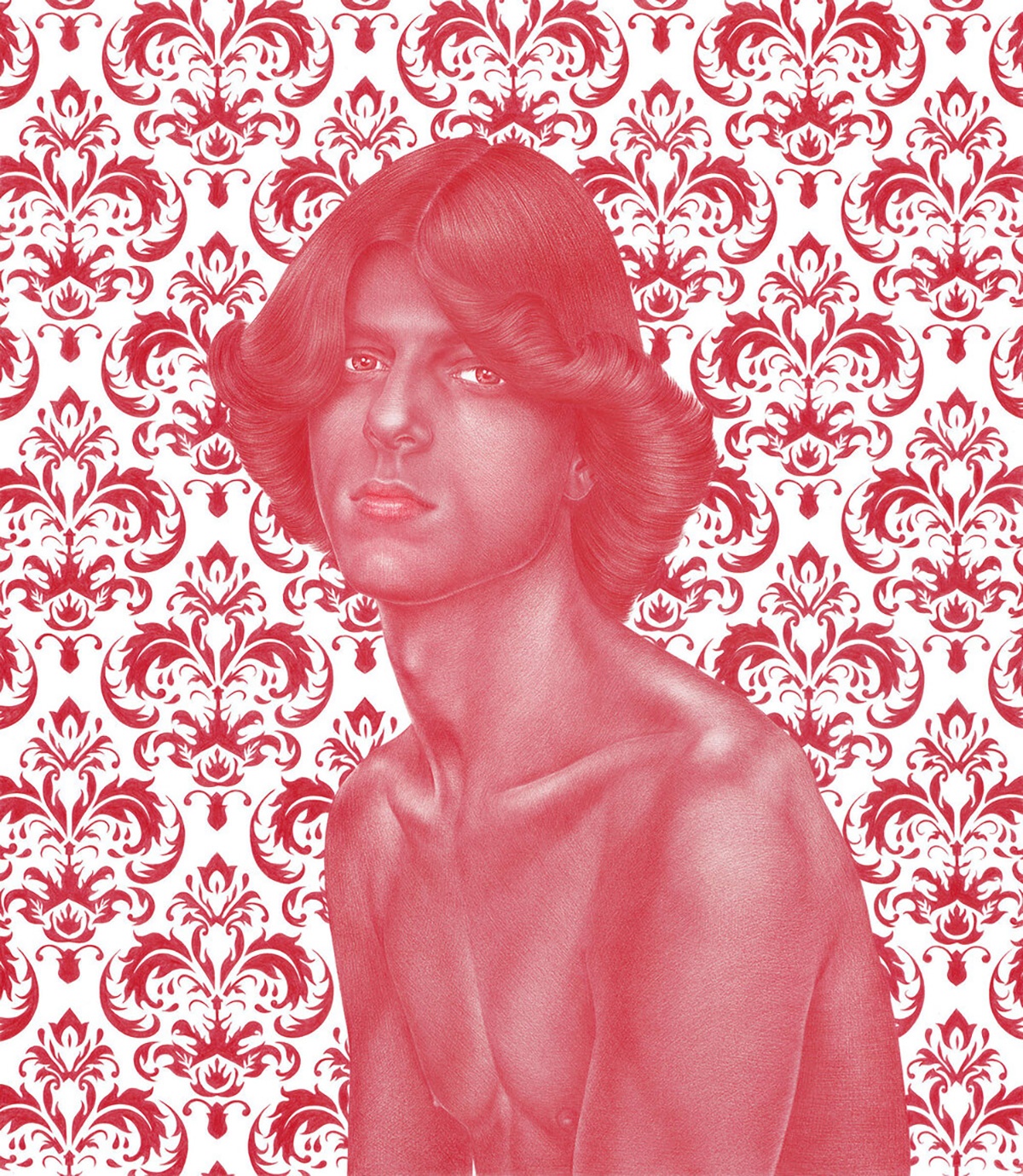 La meticolosa trama a pastello fa emergere il gioco di luci e ombre delle figure, che rende ancora più impressionante il loro realismo. L’artista sperimenta inquadrature con tagli asimmetrici e aggiunge sfondi decorativi che, per contrasto, fanno risaltare la tridimensionalità dei soggetti in primo piano.