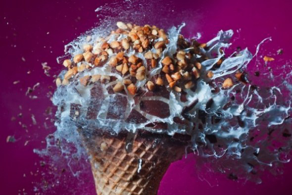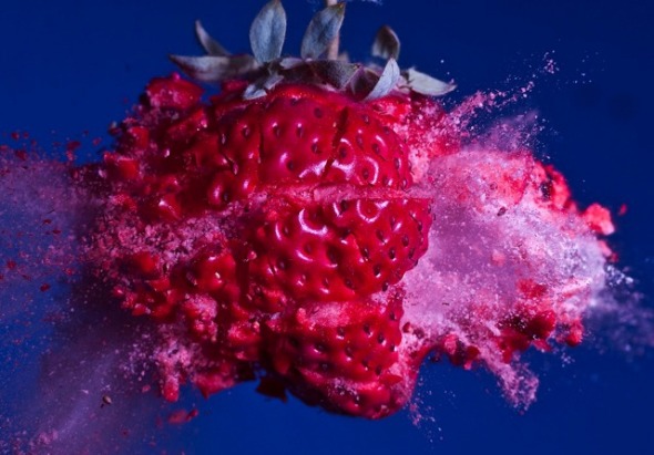 BANG, SPLASH: è con questa sequenza di suoni che l’americano Alan Sailer realizza da anni, in un garage di Camarillo (California), i suoi particolarissimi scatti fotografici, utilizzando un flash ad alta velocità ed un fucile ad aria compressa. Colpendo un qualunque oggetto, dal cibo agli addobbi natalizi, con un proiettile in gomma ed immortalando il momento dell’impatto, Sailer ci regala così fotografie di esplosioni/frantumazioni che lasciano a bocca aperta.