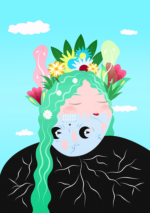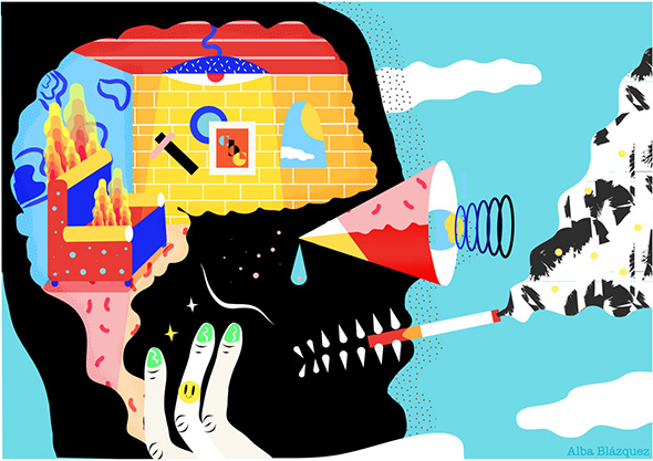 Illustratrice, graphic designer e fotografa di Madrid, Alba Blázquez si definisce un’autodidatta, anche se sta terminando i corsi in graphic design e web. Guardare l’insieme dei suoi lavori è come mettersi a sfogliare i capitoli di un romanzo di formazione dalle tinte surreali.