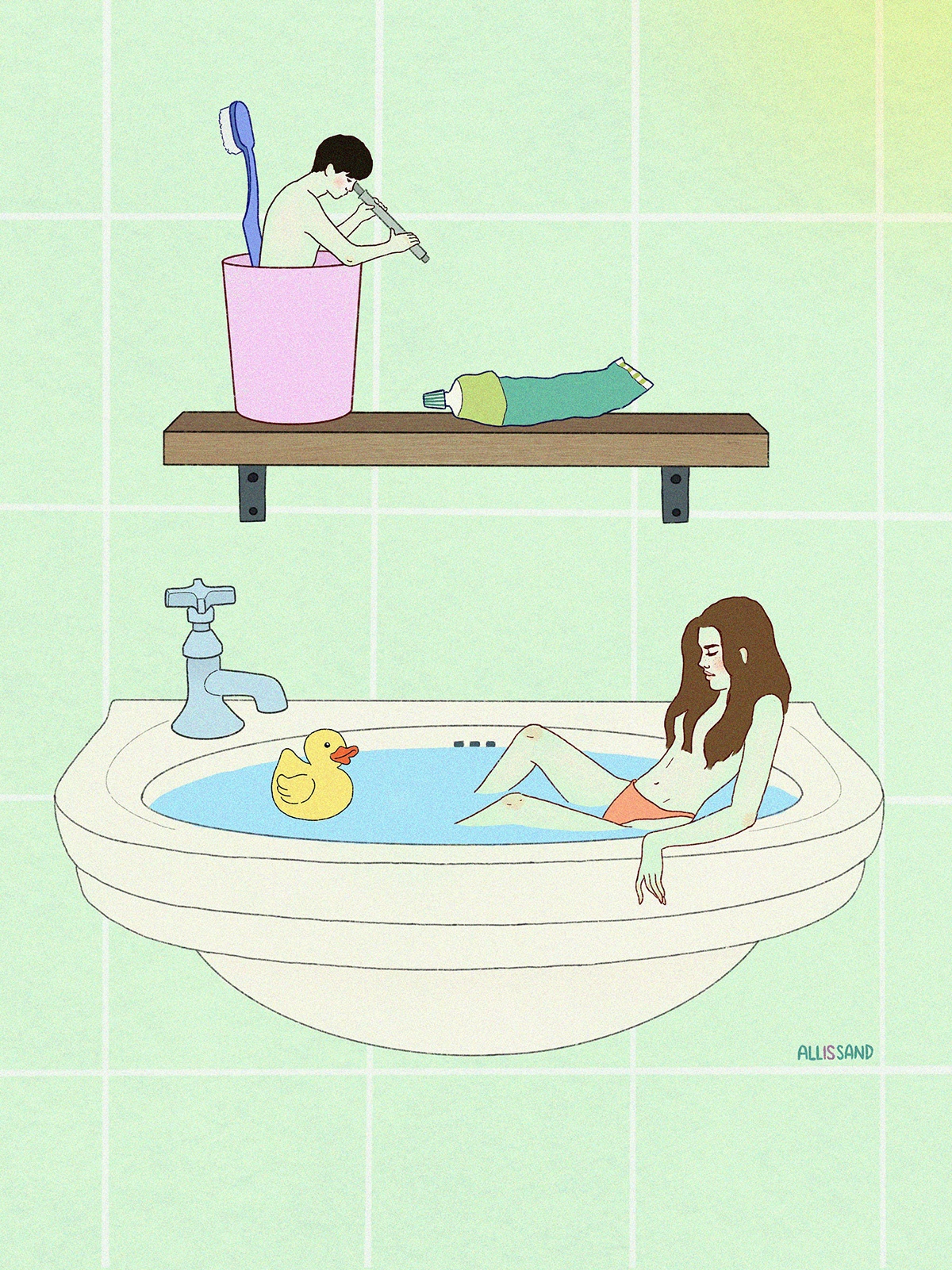 Durante la quarantena Alessandra ha iniziato a condividere su Instagram le sue illustrazioni colorate dallo stile minimale, ispirate ai temi di attualità e alle relazioni umane, che hanno attirato migliaia di followers riscuotendo un enorme successo (grazie anche a un nostro piccolo contributo). Del resto è questione di un attimo immedesimarsi nei suoi racconti che, come strofe di canzoni o come certi romanzi, sembra parlino proprio di noi. Magari non esattamente di ciò che siamo oggi, ma certo di qualcosa che siamo stati o che saremo.