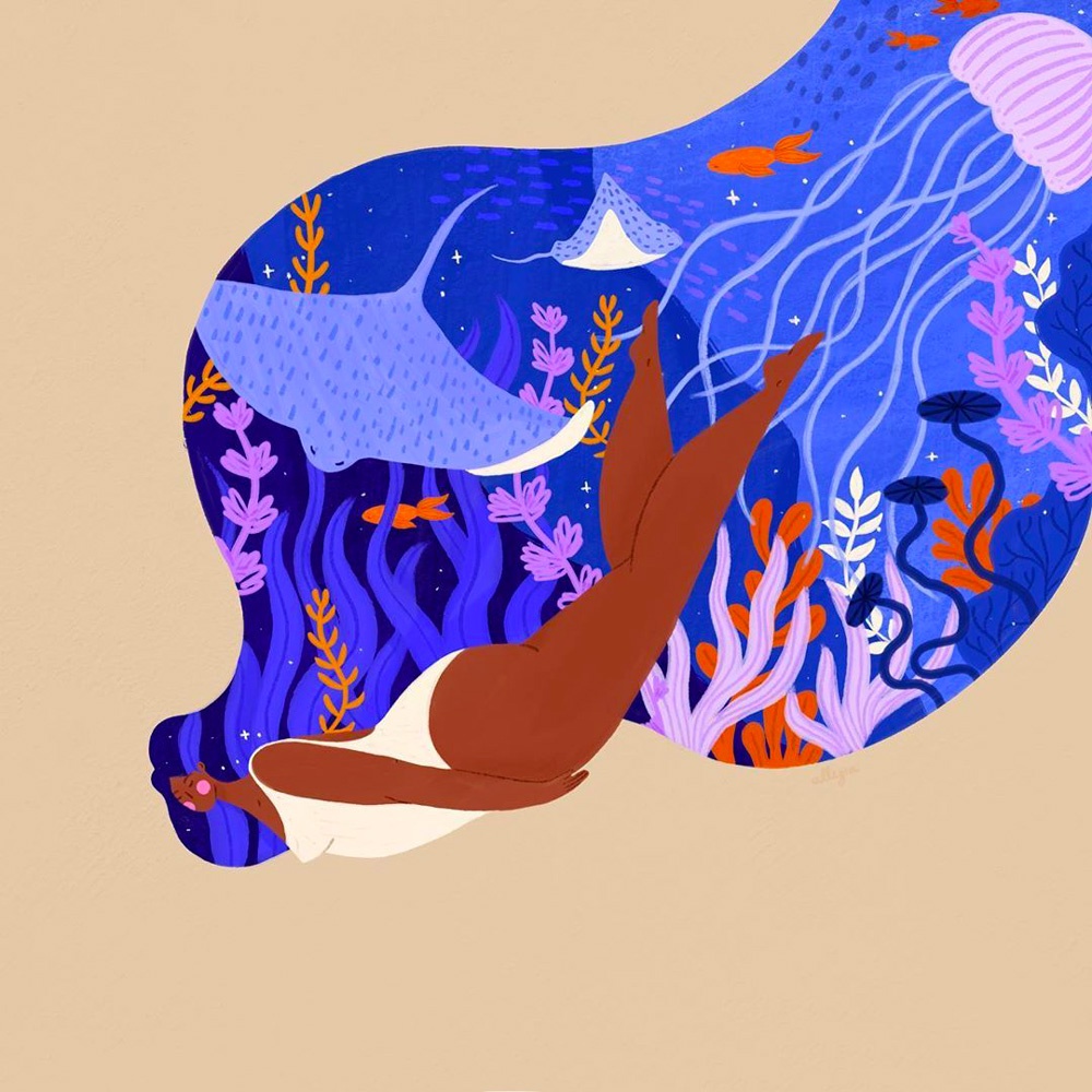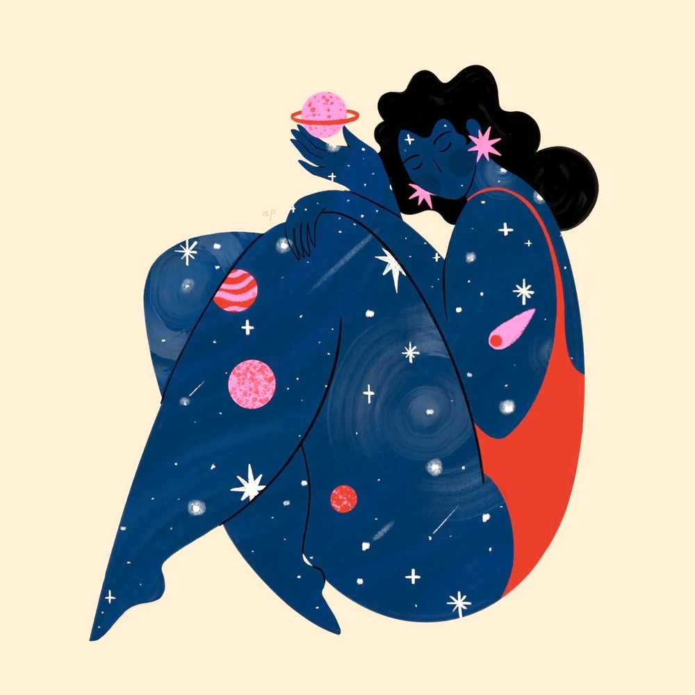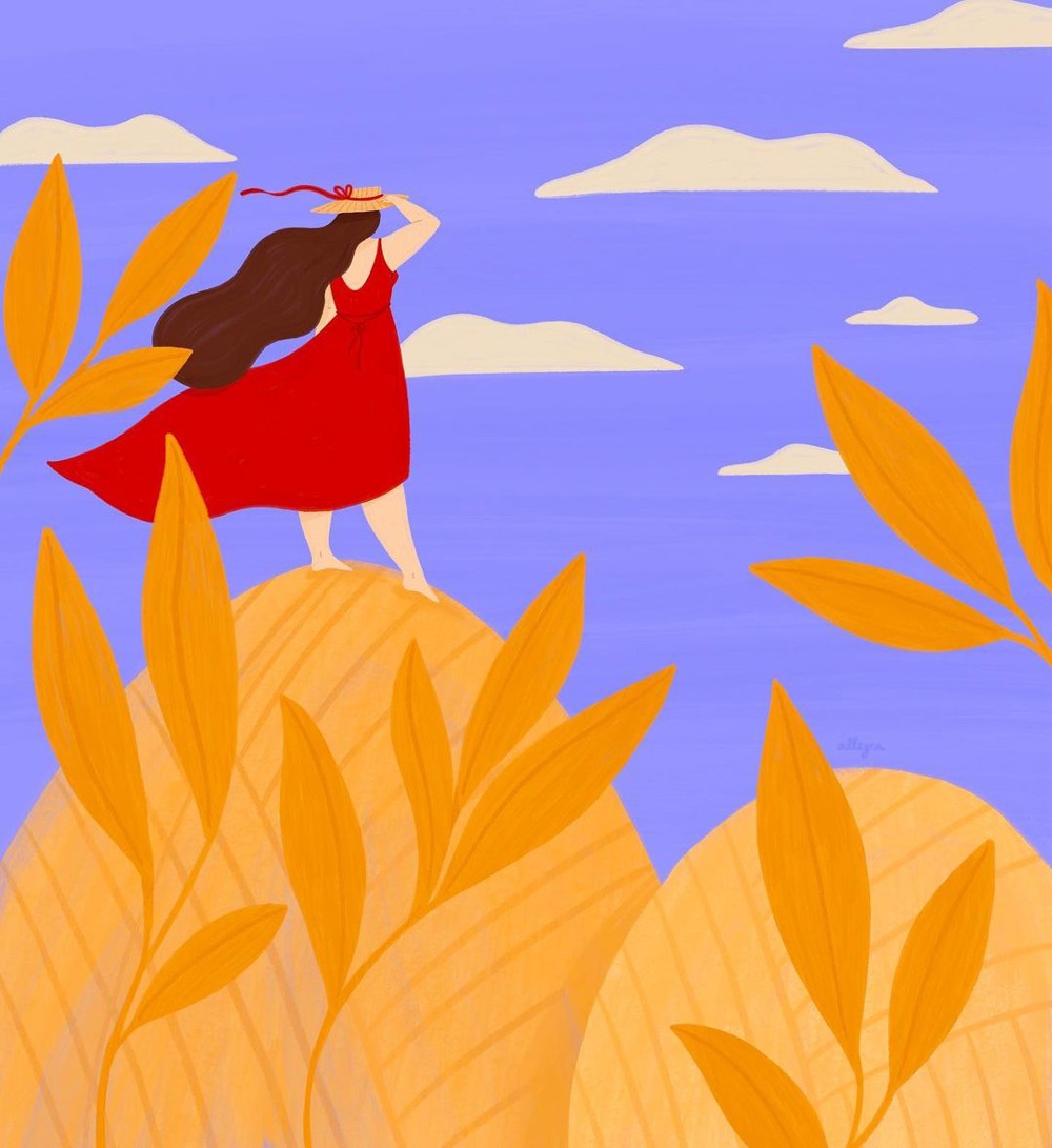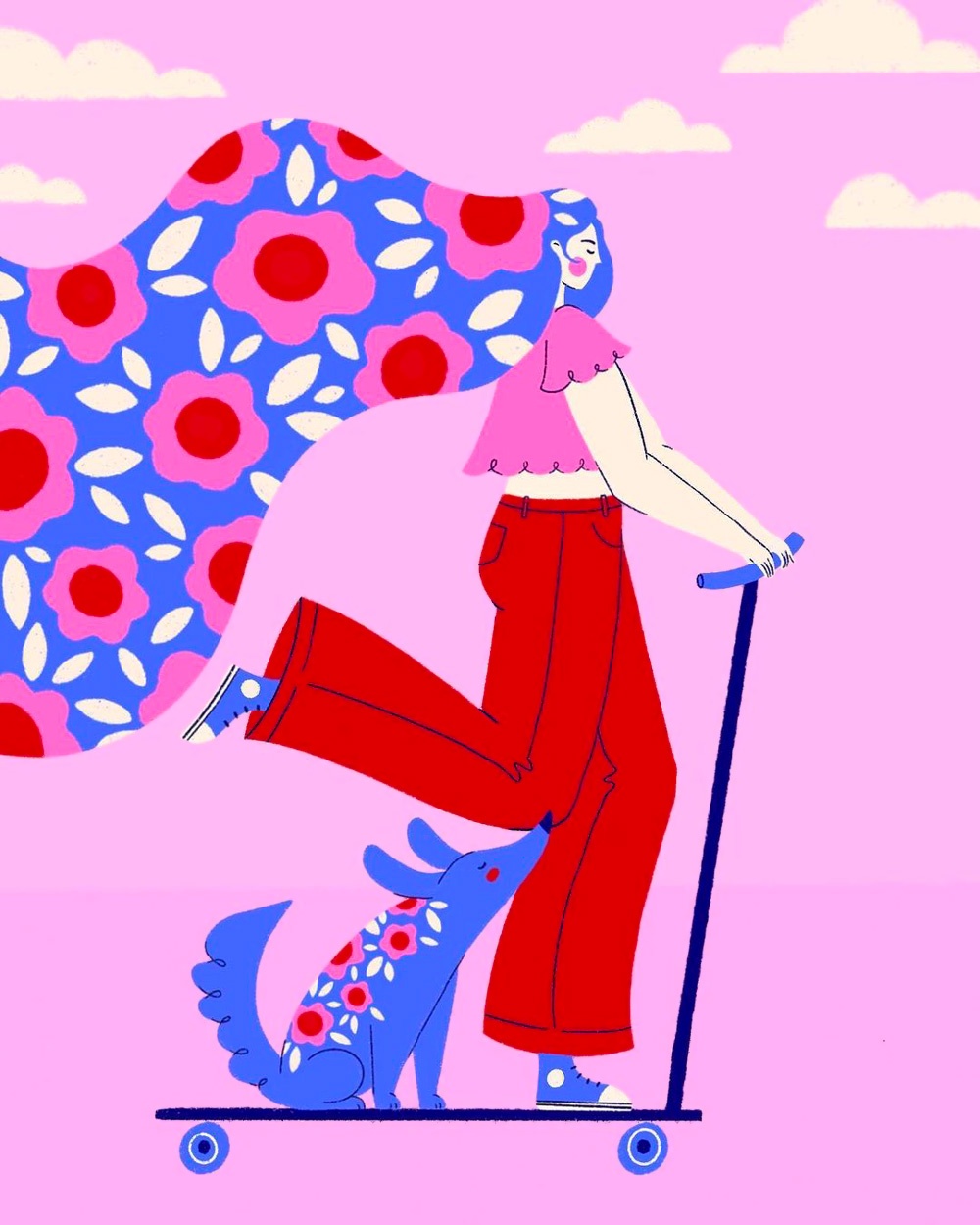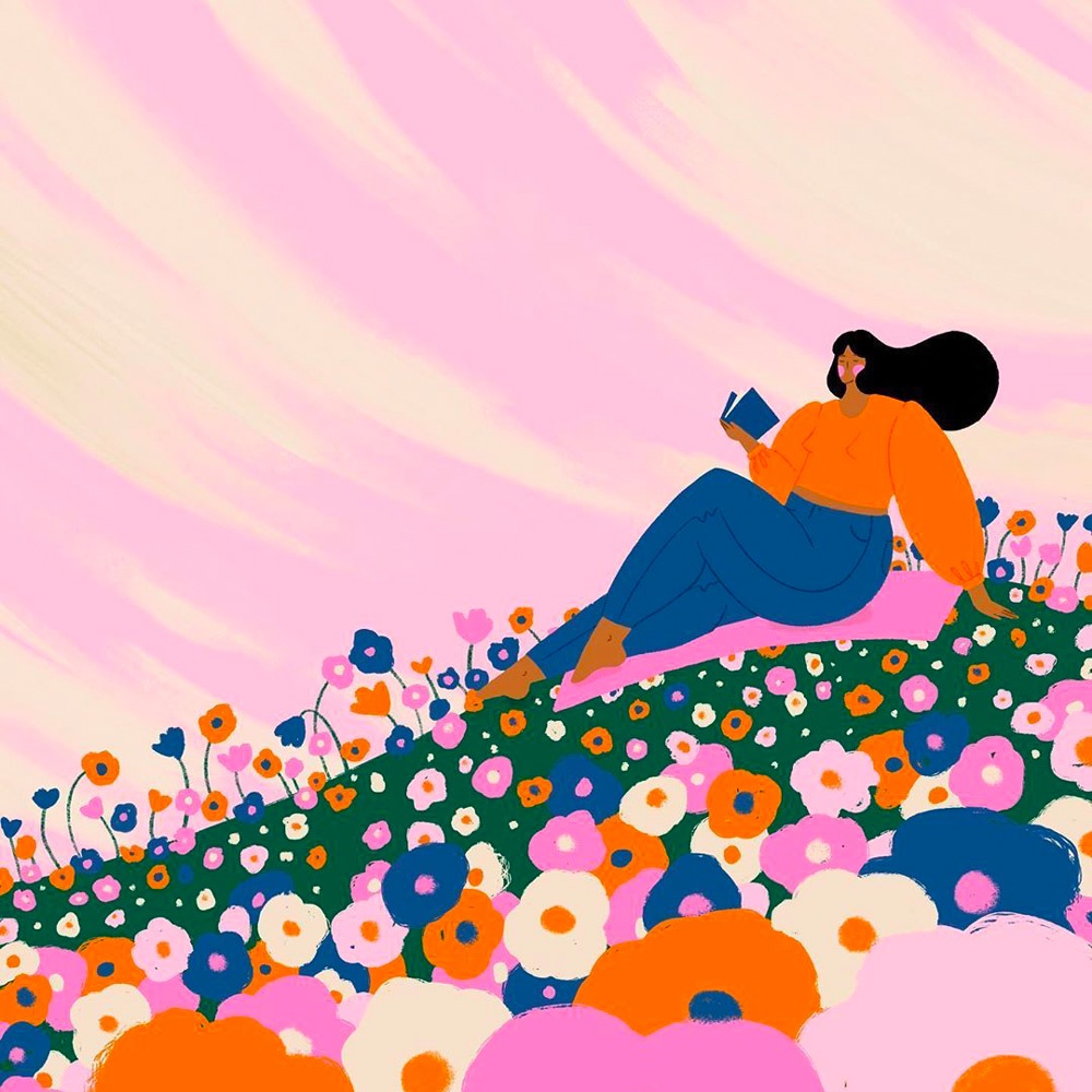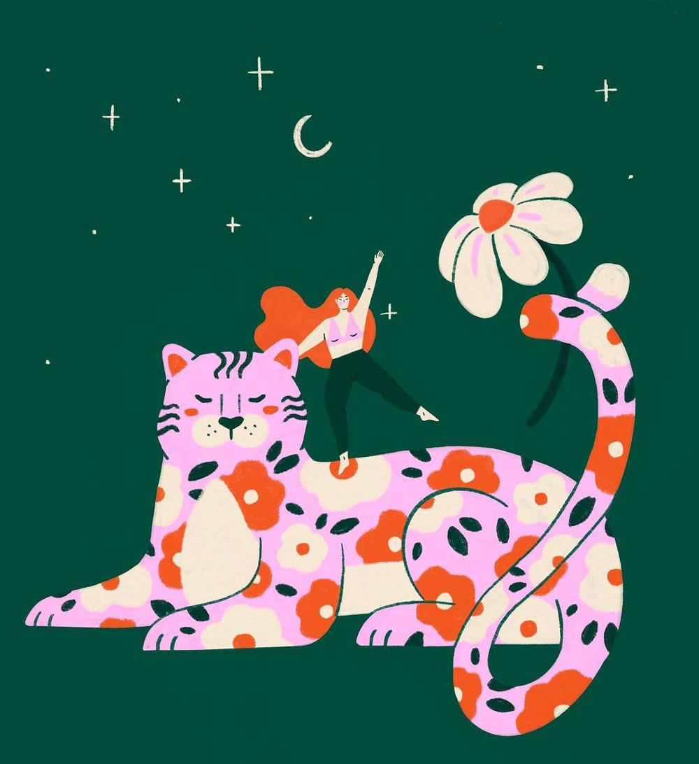 Le illustrazioni di Allegra Parlavecchio sprizzano positività da ogni dettaglio. È come se guardassimo la realtà attraverso gli occhiali rosa dell’ottimismo e tutto diventasse un piacevole sogno ad occhi aperti. I compagni di viaggio delle protagoniste sono fiori, piante e animali, giganti buoni di una favola alla Alice nel paese delle meraviglie. La loro dimensione fuori scala sembra volerci ricordare quanto siamo piccoli di fronte alla grandezza della natura e dell’universo, senza la drammaticità dei romantici ma semmai come espediente per esprimere il desiderio di essere parte di questa bellezza.