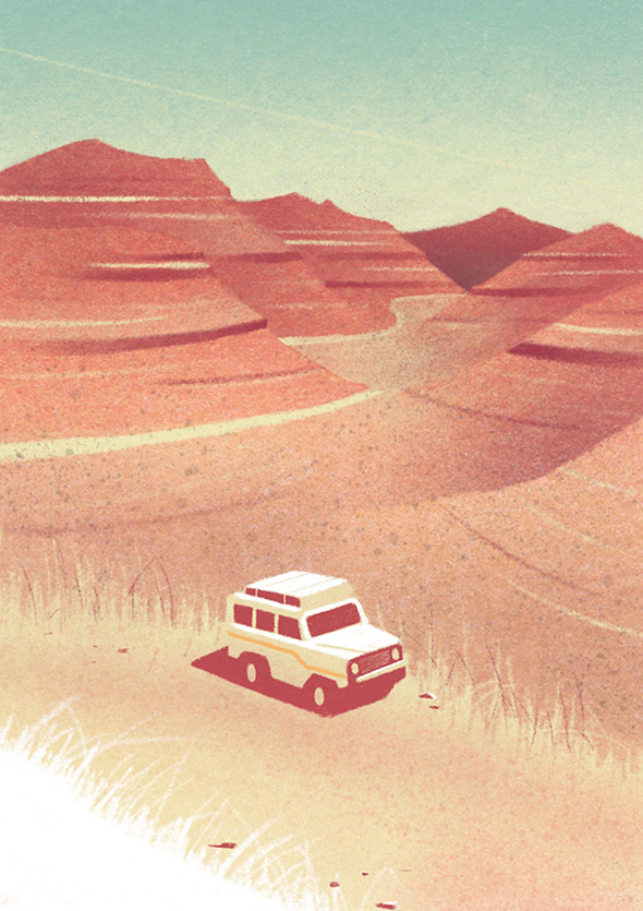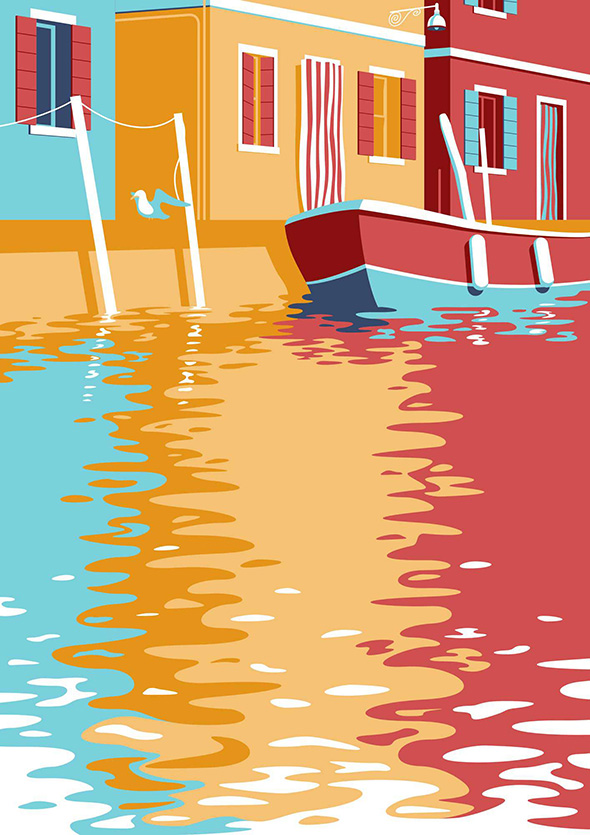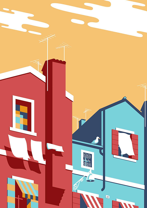 “Ciò che preferisco disegnare in assoluto sono luoghi e paesaggi, sia reali che ispirati alla realtà, motivo per cui adoro i manifesti turistici di Mario Puppo. Con le illustrazioni mi piace viaggiare, racconto di posti visitati, posti che vorrei visitare o immaginari, cercando di offrirne una visione personale”.