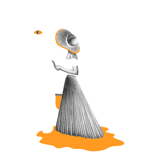 Si è formata all’Accademia di Belle Arti di Bologna, per poi specializzarsi in grafica e illustrazione, ed è rimasta fedele al disegno e al bianco e nero, forse proprio grazie alla sua formazione accademica. Ma nei lavori più recenti Amalia Mora ha arricchito la propria tecnica, creando un contrasto tra la manualità del tratto a matita e il colore digitale usato con campiture piatte, come silhouette. Tecnica usata anche con l’intrigante madame, protagonista dell’header che ha realizzato in esclusiva per PICAME.