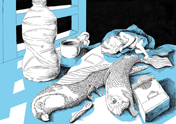 Ha affrontato anche la narrazione visuale dei comics, illustrando una delle 13 storie di Ilaria Bernardini, “La fine dell’amore”, ed è stata presente a BilBolBul nel 2011 con una bella serie di disegni bianchi su fondo nero (sul sito c’è anche la video-intervista a lei dedicata). Ha collaborato con Daniela Tieni al progetto “A silent dialogue”, che vede le due autrici dialogare a colpi di matita disegnando dal vivo durante la mostra.