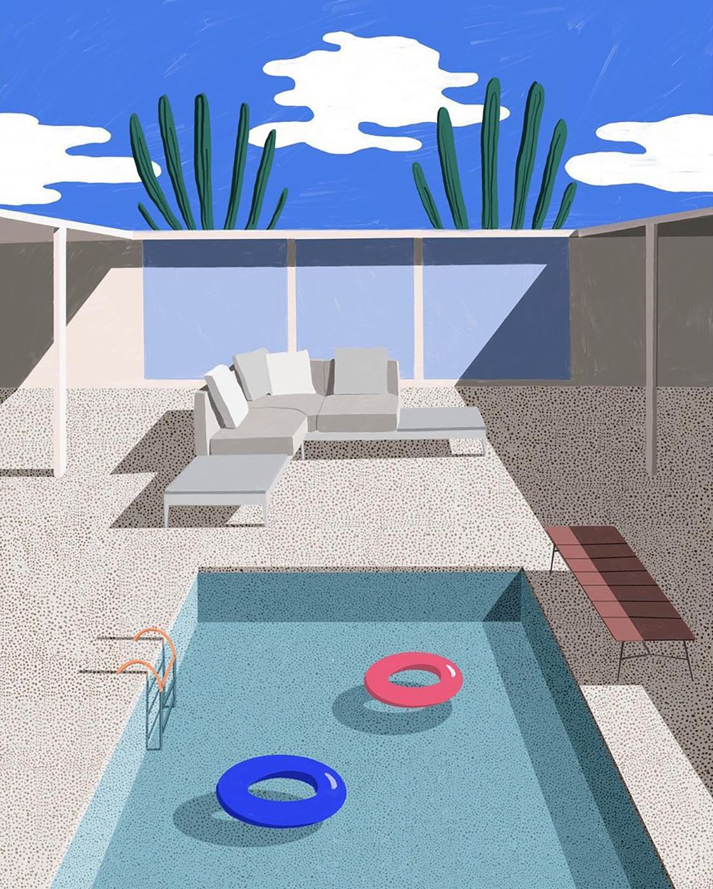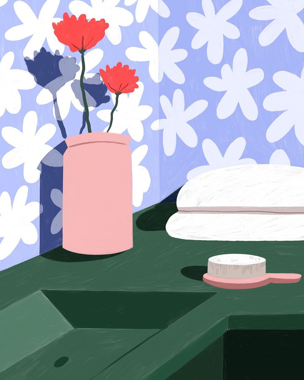 Spesso sono proprio gli spazi vuoti che riescono a raccontare una storia senza bisogno di parole. Come nella migliore inquadratura di un film, la scena che cattura lo sguardo è quella più pura, quasi scarna, ma perfettamente intensa. Colori pastello, forme pulite, curve morbide ed ombre sinuose sono al centro della produzione artistica di Ana Popescu, artista profondamente affascinata e influenzata dal movimento Bauhaus e dalle silhoutte misteriose delle dimore che scopre durante i suoi viaggi in giro per il mondo.
