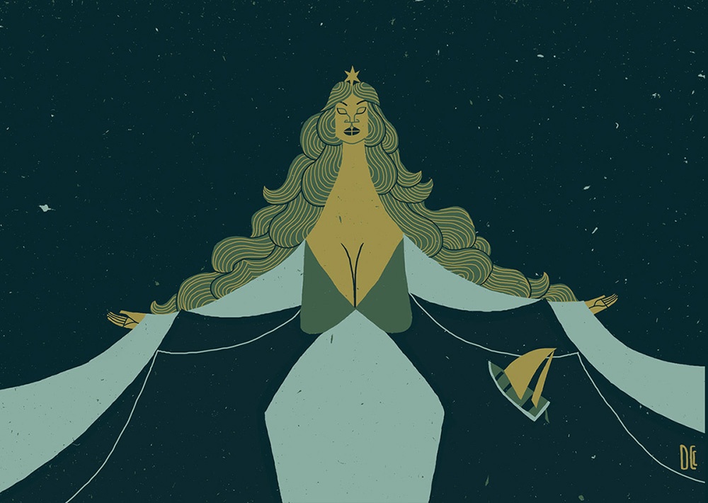 I suoi lavori sono un tripudio di colori caldi, vitali e accesi che riportano subito alla mente i paesaggi selvaggi e incontaminati della terra amazzonica, ricca di tradizioni e storia. L’interesse per la ritualità e le narrazioni mitiche del passato non si fermano però solo alla sua terra d’origine ma trovano ampio spazio anche nelle sue tavole raffiguranti miti greci, latini e egizi. Uno stile inconfondibile e di forte impatto visivo che riesce a colpire per l’energia espressiva e potente, soprattutto nelle illustrazioni di impegno sociale e politico, con al centro le lotte controverse della nostra contemporaneità.