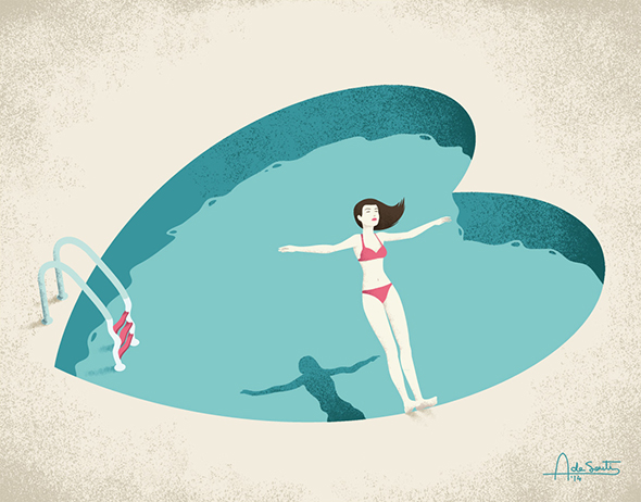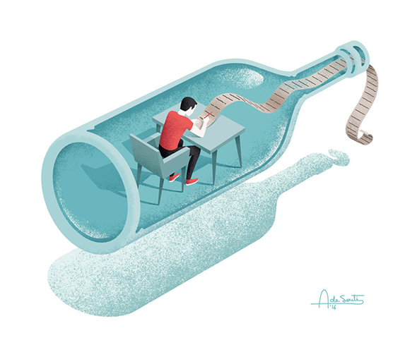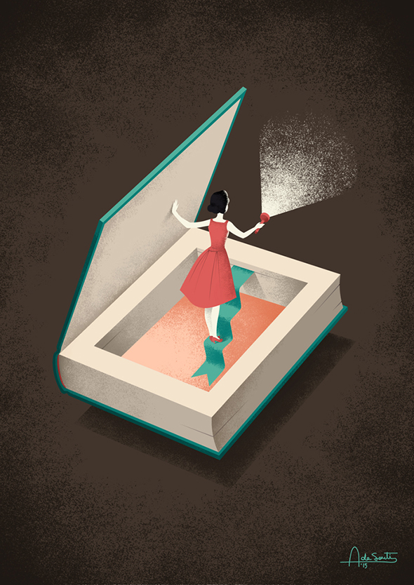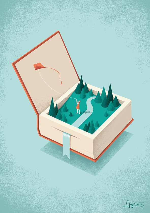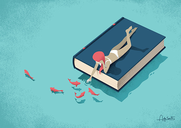 Una sua illustrazione selezionata al Salon du Livre 2014 è diventata molto popolare e ha fatto il giro del web, segnando l’evoluzione del suo stile e diventando punto di partenza per una fortunata serie dedicata alla lettura e al rapporto che esiste tra il mondo sulla carta e la vita reale. E su questo tema Andrea ha voluto continuare anche con il fresco e benaugurante soggetto dell’header che ha regalato ai lettori di PICAME in occasione dell’uscita di questo articolo. Buone letture estive a tutti!