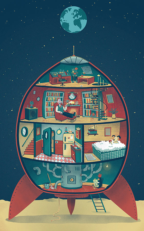 Andrés Lozano is a young illustrator from Madrid who confesses being slightly obsessed with architecture, vegetation and noir movies, as well as a compulsive buyer of notebooks, books and art supplies. While completing his design degree at the university, he works as an freelance illustrator, animator and graphic designer.