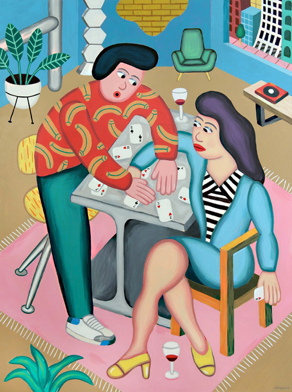 Le sue illustrazioni isometriche, così come i suoi dipinti che sfidano la prospettiva, sono vere e proprie esplosioni di colore. I soggetti rappresentati hanno forme goffe ma simpatiche, dal tratto bambinesco, che è il vero marchio di fabbrica di questo poliedrico creativo. Nella sua client list figurano MTV, Warner Bros, The New York Times, tanto per citarne alcuni.