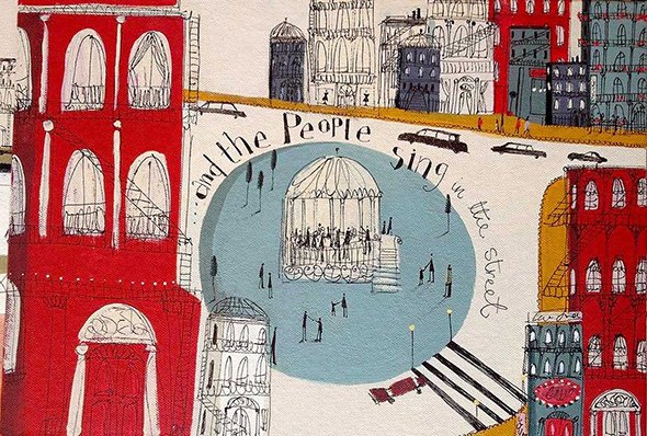Le immagini si susseguono allegramente, anarchiche nella costruzione, ironiche e gioiose nei messaggi: stare bene, godersi la vita, infischiarsene, divertirsi. I soggetti variano, da figure femminili implacabilmente placide a pirotecniche vedute urbane, da volpi al pianoforte a viaggi per nave o nello spazio. È una vista che rallegra e alleggerisce il cuore, che sprona a lasciarsi andare alla speranza e all’accettazione di sè, e di cui non ne abbiamo mai abbastanza.