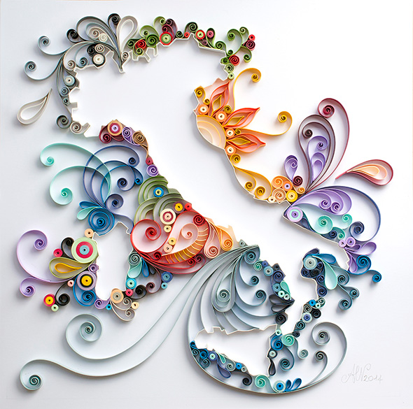È davvero stupefacente il grado di precisione e di dettaglio che Anna Chiara riesce a raggiungere, così come la sua abilità nell’uso dello spazio negativo: spesso infatti il soggetto centrale dell’opera non viene realizzato materialmente ma emerge dallo spazio bianco lasciato libero dagli elementi che lo circondano.