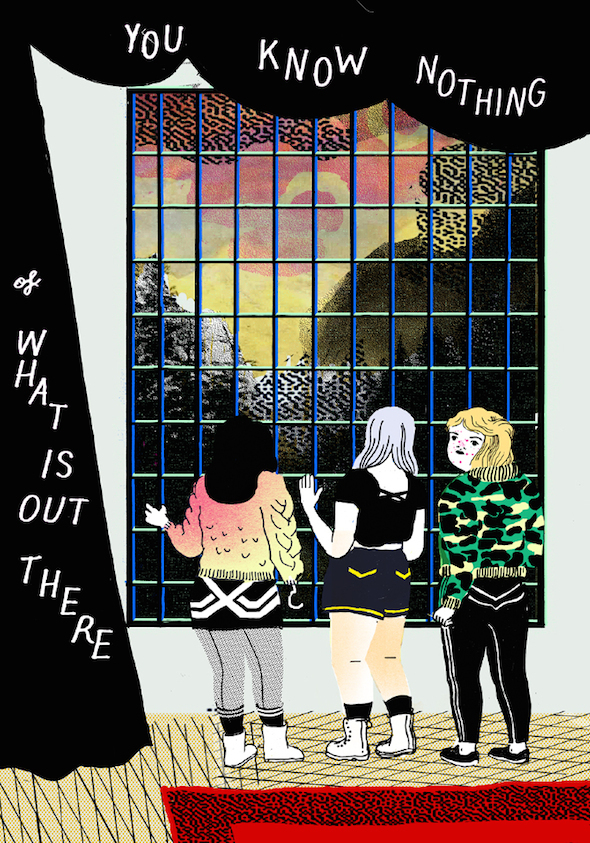 La pittura ad olio fusa con il disegno a matita e il collage digitale; la giustapposizione di stili, grafismi, macchie, textures Anni ’80; il continuo interscambio tra fumetto, illustrazione ed arte, campi vicini ma ugualmente difficili da padroneggiare: tutto questo concorre a rendere Anna Deflorian un’artista dall’impatto intenso e spiazzante. Autrice per Canicola Edizioni, con clienti quali Perrier e New York Times nel curriculum, le ragazze protagoniste delle sue immagini sono forti ma vestite con classe, immerse in atmosfere e paesaggi lynchiani, così simili ai boschi e alle montagne trentine in cui lei stessa è nata, Anna è un talento fortemente originale e l’autrice del nostro nuovo header.