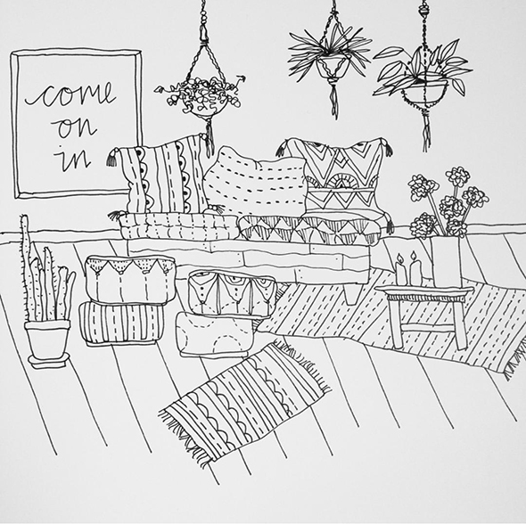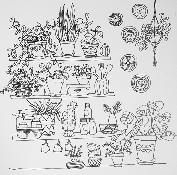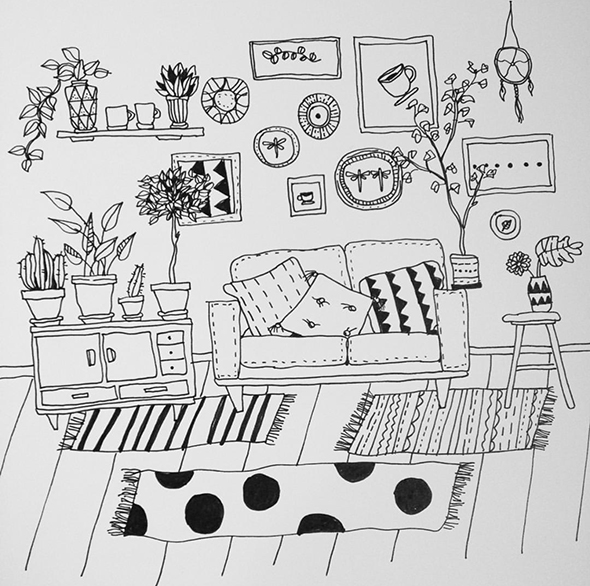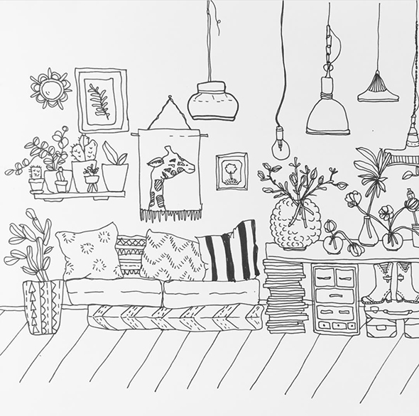 Anna disegna principalmente ambienti domestici, ne traccia i contorni in bianco e nero, con abbondanza di dettagli, e lascia il resto alla nostra immaginazione. La straordinaria semplicità delle sue illustrazioni risiede proprio nel non avere altra pretesa che non sia il trasmettere quel senso di tranquillità che si prova stando a casa, circondati dagli oggetti che amiamo e che ci fanno sentire al sicuro.