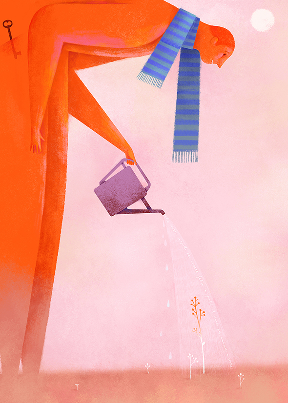 Un’altra caratteristica delle illustrazioni di Anna sono le sproporzioni tra i soggetti rappresentati: la chiave di lettura dell’immagine è affidata ad un personaggio o ad un particolare piccolo ma importante. Questa impostazione potenzia l’emozione che lega i vari elementi messi in scena, come succede, ad esempio, nei dipinti di Caspar David Friedrich, dove minuscole figure umane contemplano la vastità sublime del paesaggio naturale.