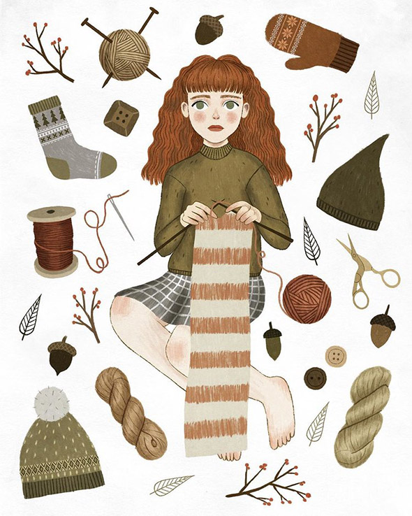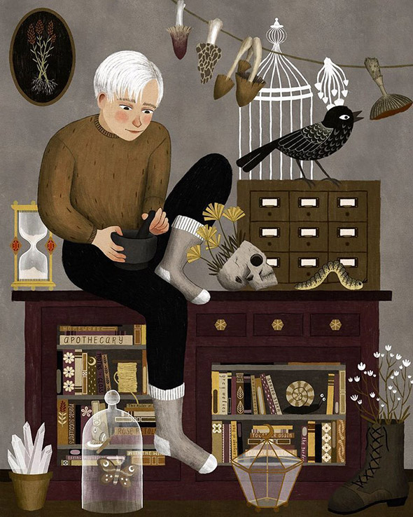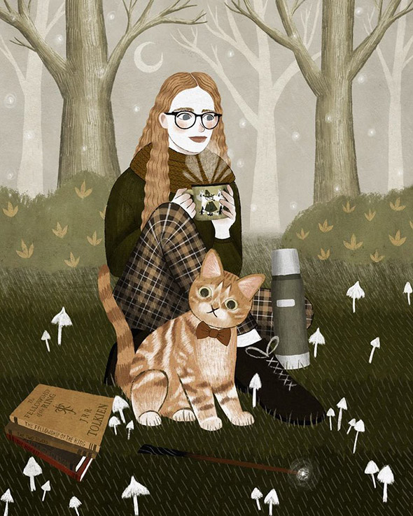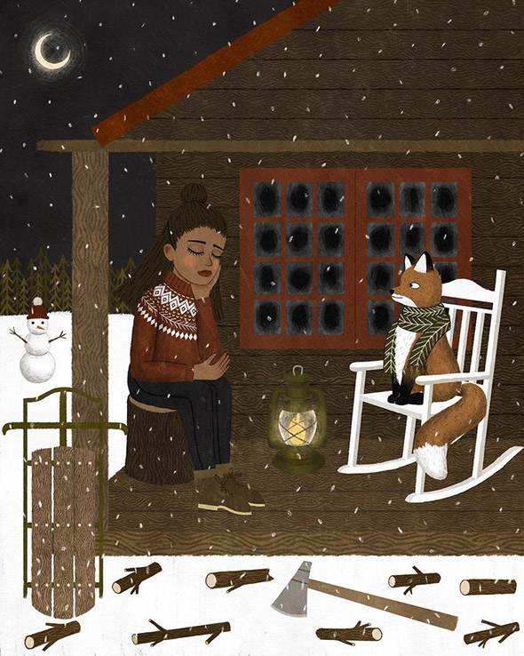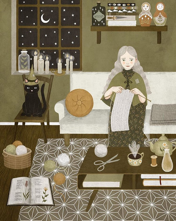 L’illustratrice porta un nome finlandese ma viene dal canadese Ontario e dice di ispirarsi alla quotidianità e alle proprie abitudini, legate alla quiete e alle gioie familiari. Foglie, piante, animali, paesaggi trasognati e magici: l’immaginario di riferimento fa appello alla natura e alla tradizione, filtrandole attraverso il potente sguardo dell’infanzia, in cui ogni creatura convive in perfetta armonia.