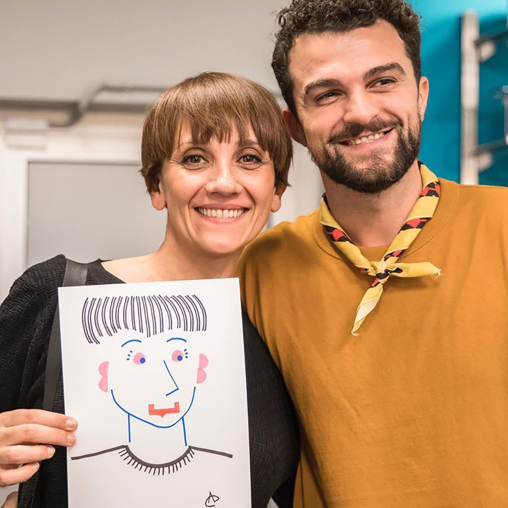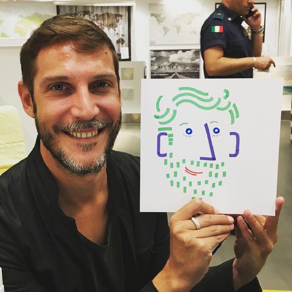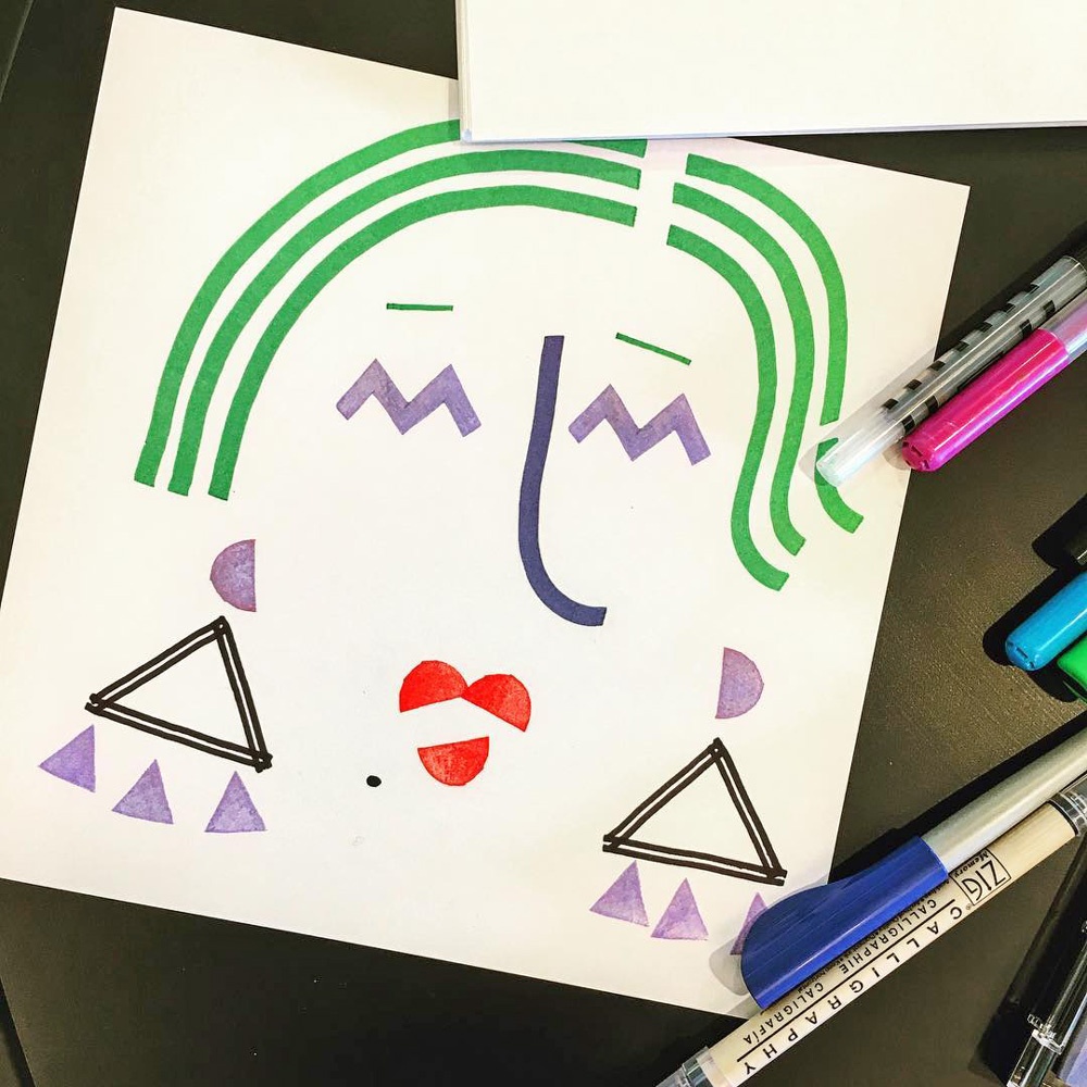 ScombinAnto usa l’illustrazione come un mezzo per coinvolgere il pubblico e provocarlo positivamente. Una volontà che emerge anche dai commenti che accompagnano i suoi post sui social, specialmente quelli recenti dedicati al lockdown, e da progetti come quello dei Ritratti Modulari, ispirato al classico ritratto degli artisti di piazza e quindi eseguito dal vivo, in maniera “astratta”, utilizzando come moduli dei timbri geometrici. Un esperimento coevo a quello di Tobias Gutmann, di cui vi ho parlato qui.