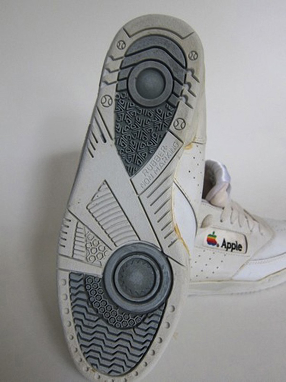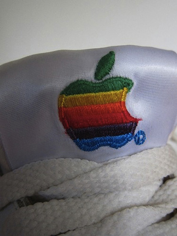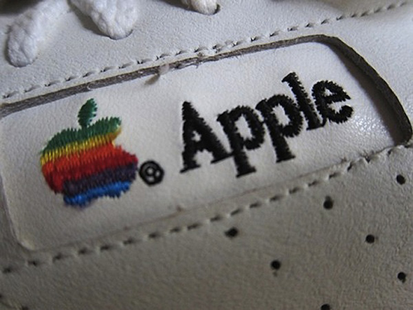 Ebbene sì, è esistita una linea di abbigliamento Apple durante gli inesauribili anni ’80, in serie limitata e destinata unicamente ai dipendenti, e queste sneakers dalla mela multicolor lo testimoniano.