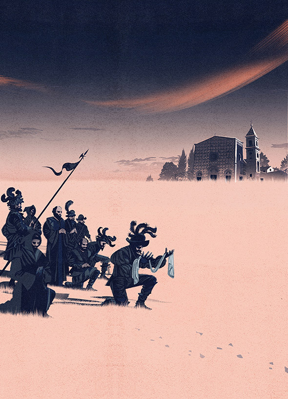 Ciao! Sono sempre stato un appassionato di leggende antiche, segreti misteriosi e fatti apparentemente inspiegabili. Mi entusiasmano quelle strane storie, che non possono non accendere la fantasia di chi le legge. Ho deciso che avrei dovuto trovare un’opportunità per illustrare queste storie, e se non avessi trovato questa opportunità, me la sarei creata. È nata in questo modo la collaborazione con Massimo Polidoro. Assieme abbiamo immaginato un libro che racchiudesse tutti quei luoghi, spesso dimenticati, legati a fatti curiosi o a leggende nere. Bompiani è stata fantastica dandoci completa libertà ed autonomia ed aiutandoci a modellare il libro che avevamo pensato: un atlante per viaggiare nel mistero.