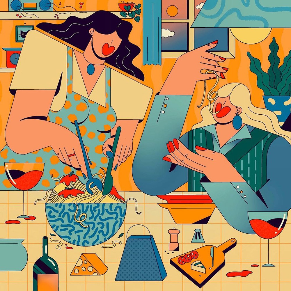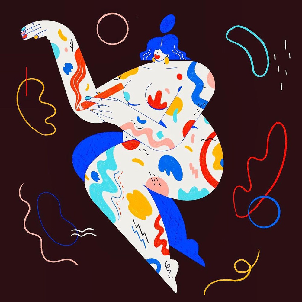 Nelle mie illustrazioni potrete sicuramente trovare linee importanti, forme semplici e tanto tanto colore. Preferisco rappresentare soggetti femminili in situazioni comuni e quotidiane, con un’attenzione particolare a temi sociali e egualitari.