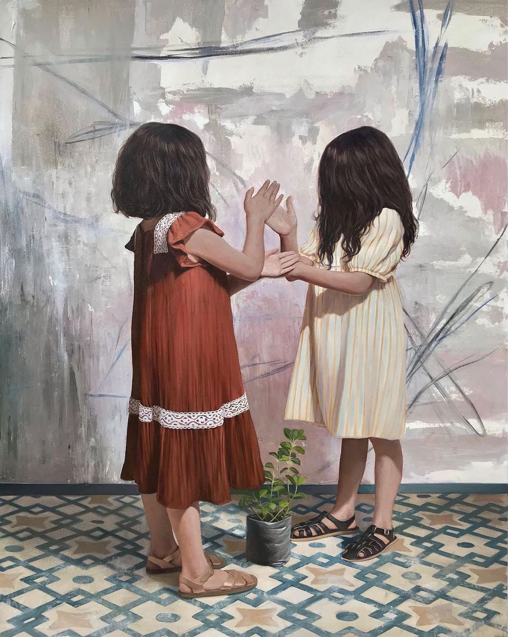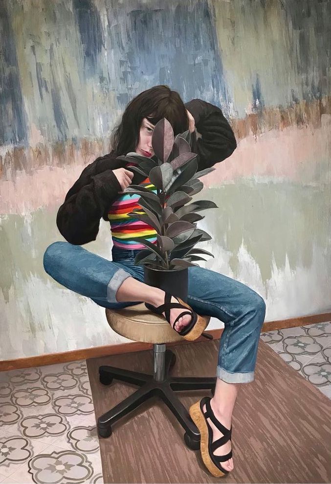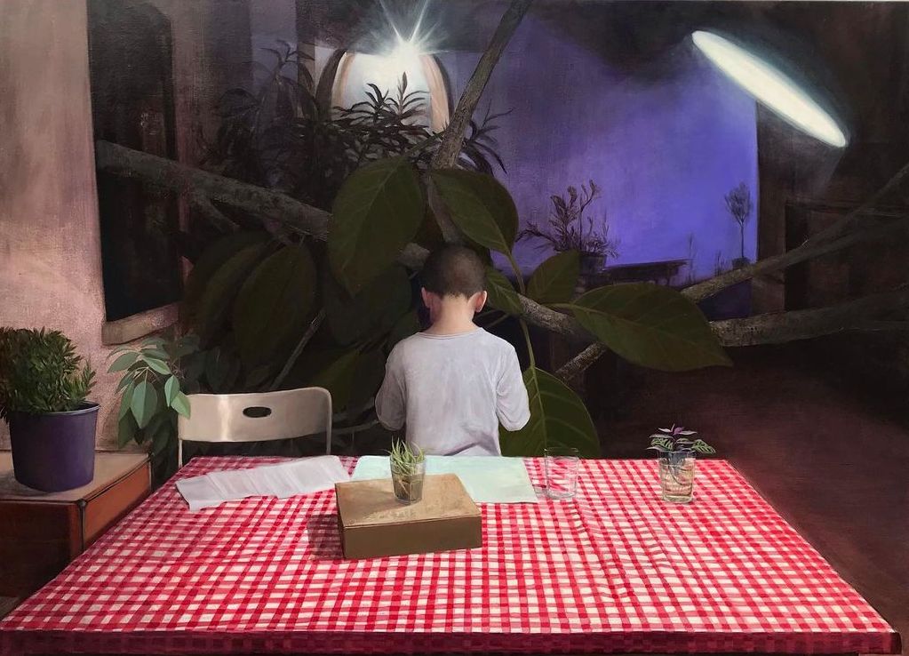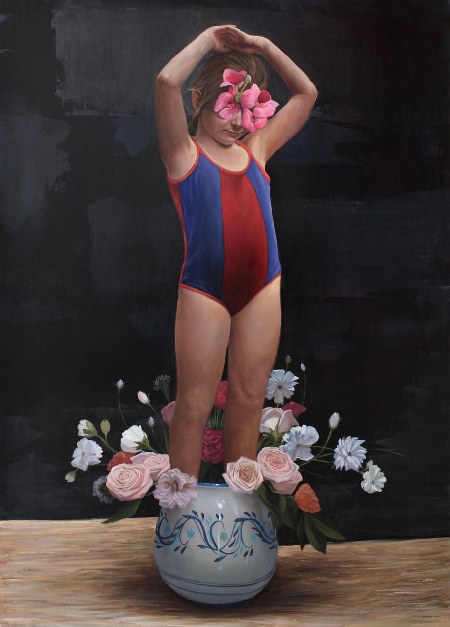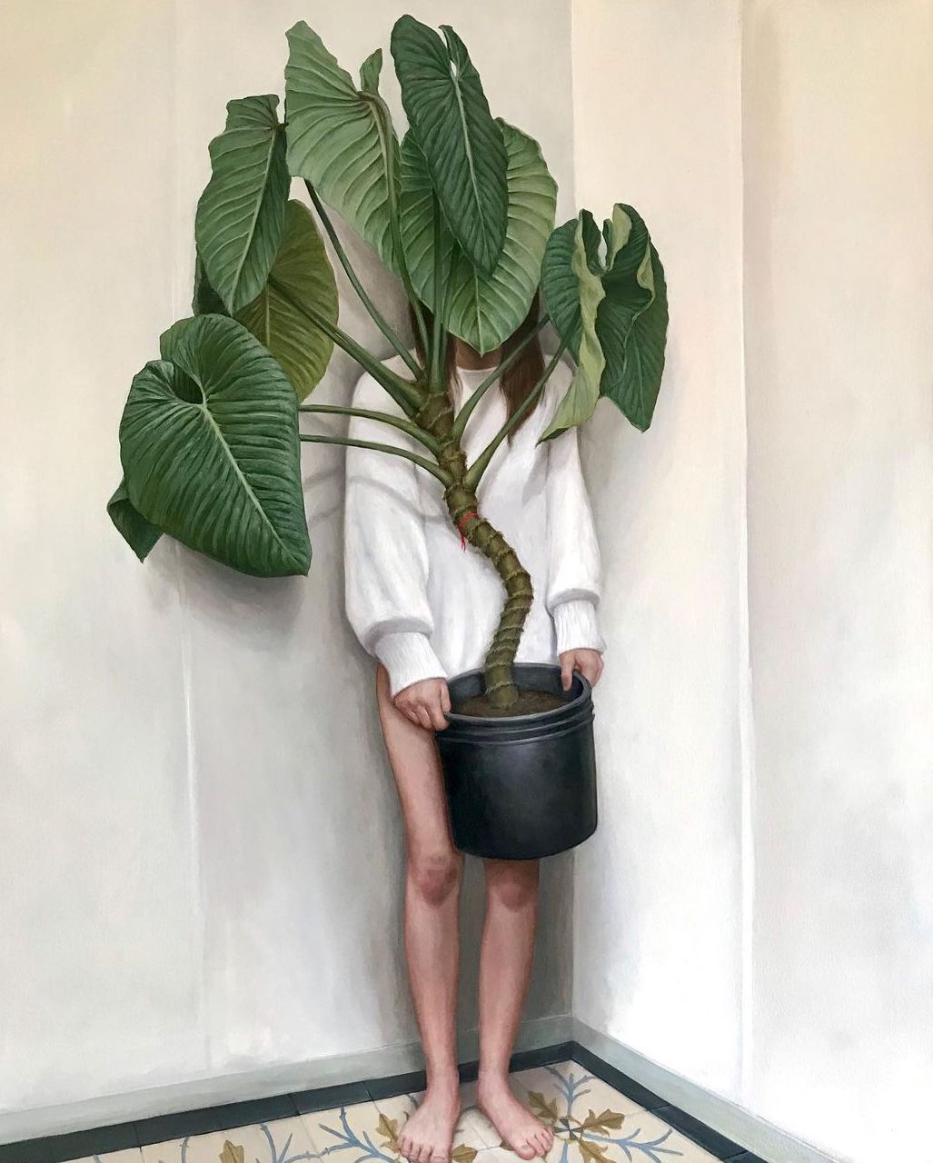 Spiccano le figure umane, di cui non sempre scorgiamo lo sguardo. Donne, uomini e bambini inseriti in contesti casalinghi o in situazioni più surreali, oppure colti in un attimo nel tempo. Ad accompagnarli la presenza costante e rassicurante della natura, in forma di fiori, piante e animali.