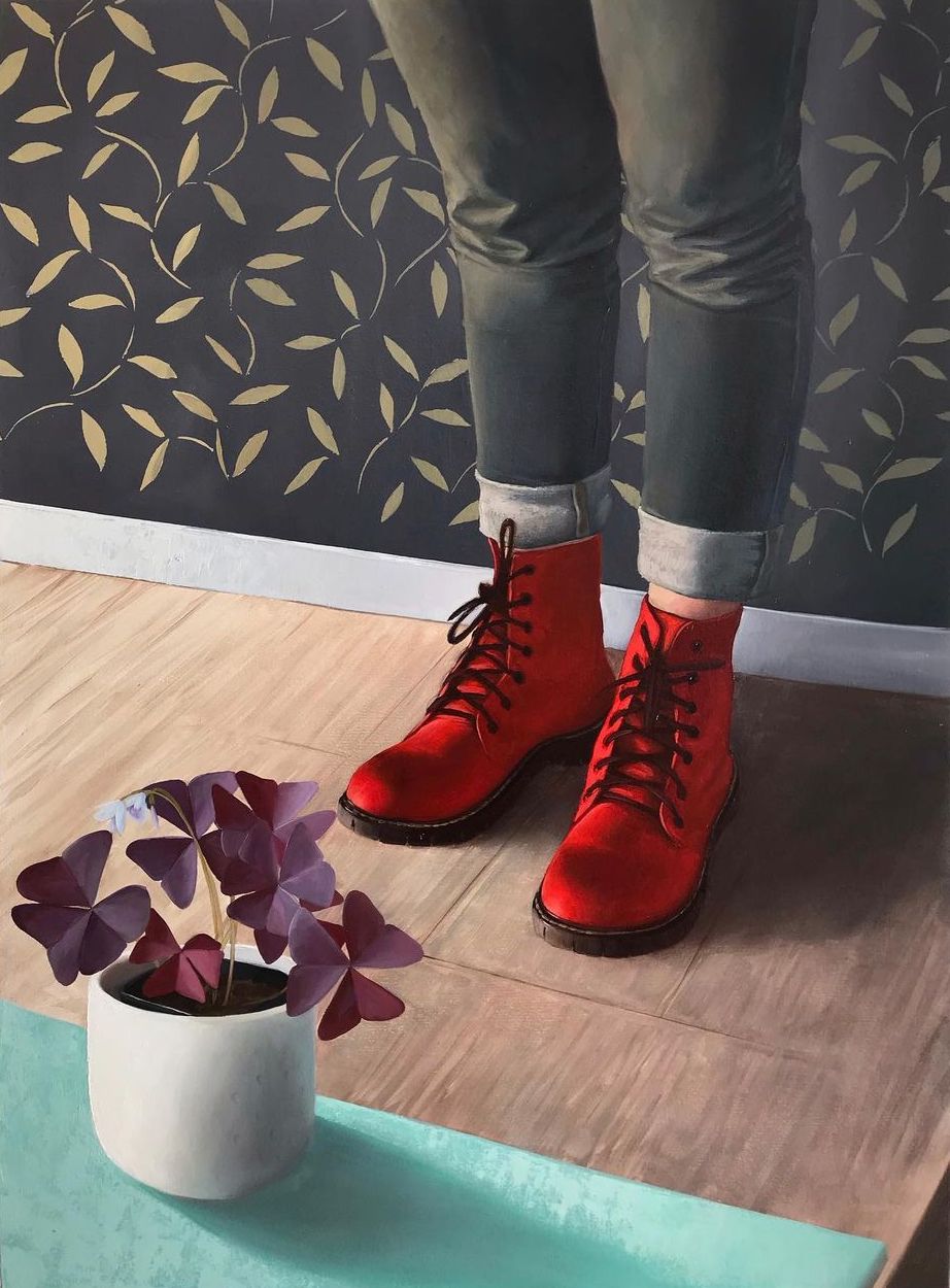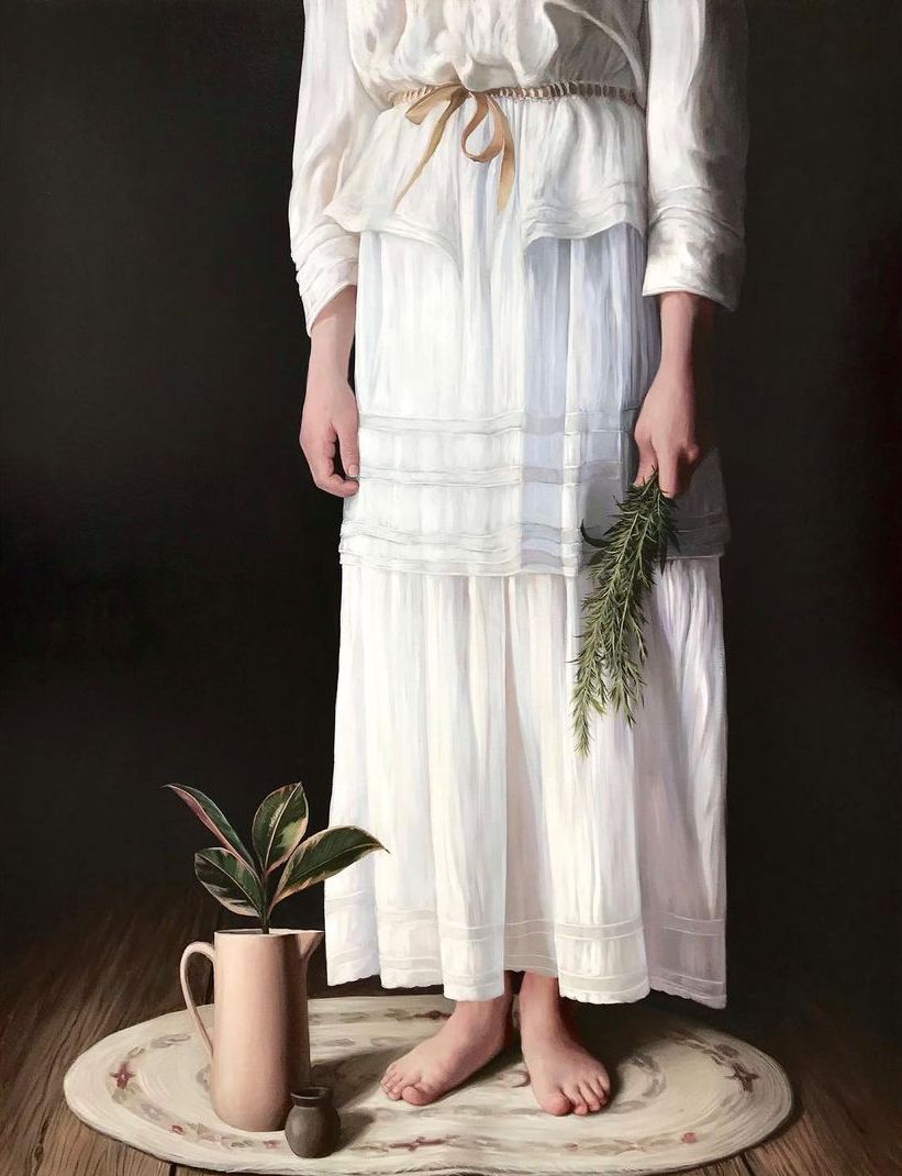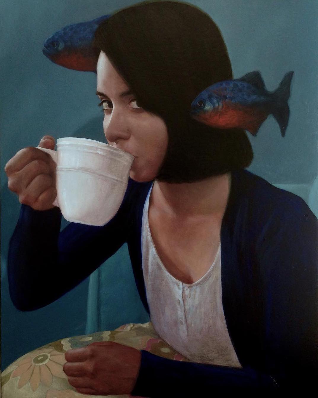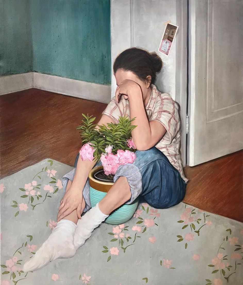 Spiccano le figure umane, di cui non sempre scorgiamo lo sguardo. Donne, uomini e bambini inseriti in contesti casalinghi o in situazioni più surreali, oppure colti in un attimo nel tempo. Ad accompagnarli la presenza costante e rassicurante della natura, in forma di fiori, piante e animali.