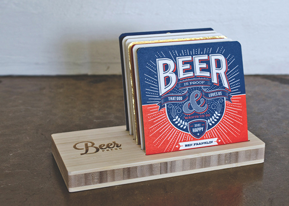 Design, typoghraphy, letterpress and… beer“. Sono le quattro passioni di Jordan Mummert, creatore del progetto Beer Press. Un collezione di 6 sottobicchieri in cartone, realizzati da altrettanti designer, che al momento trovate su Kickstarter in attesa di finanziatori. Da collezionare, più che da utilizzare, e da sfoggiare sulla loro base di bamboo 100% handmade.
