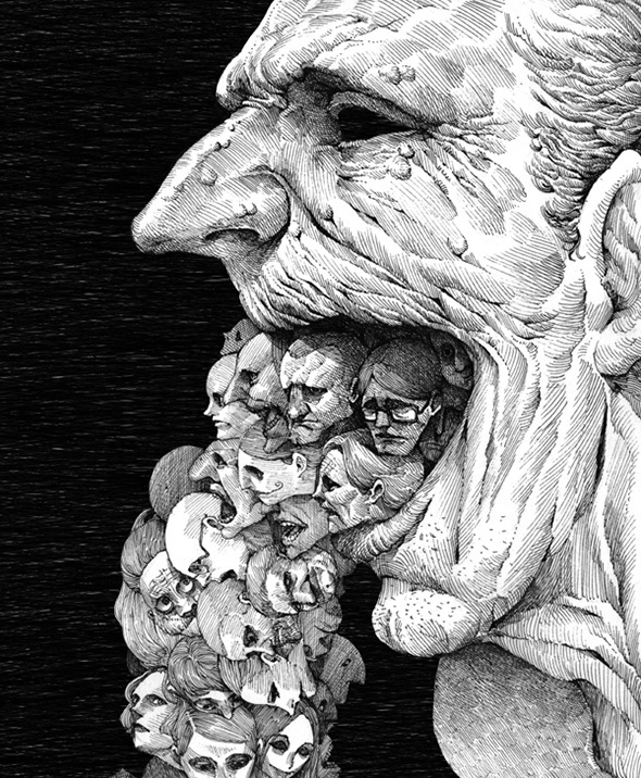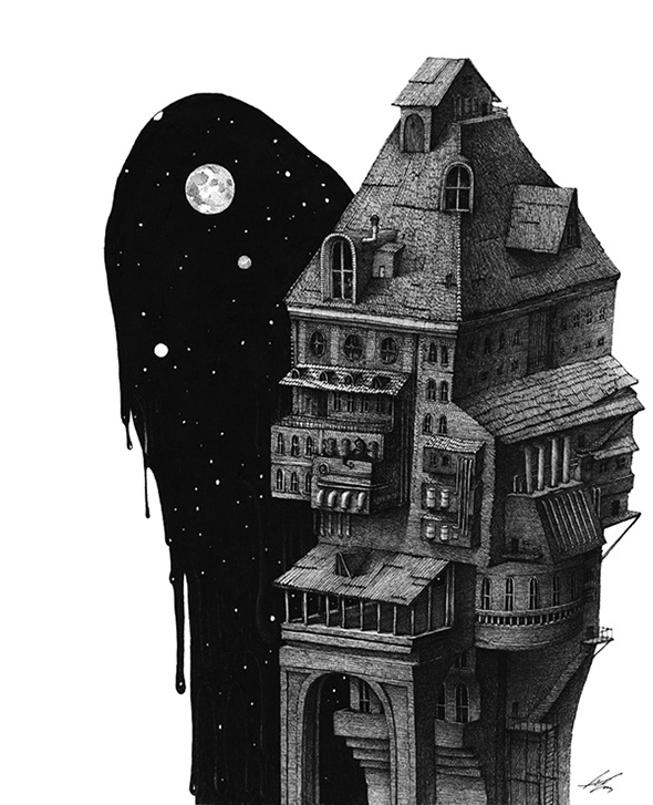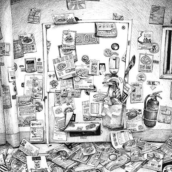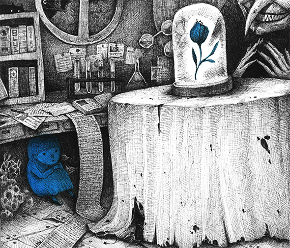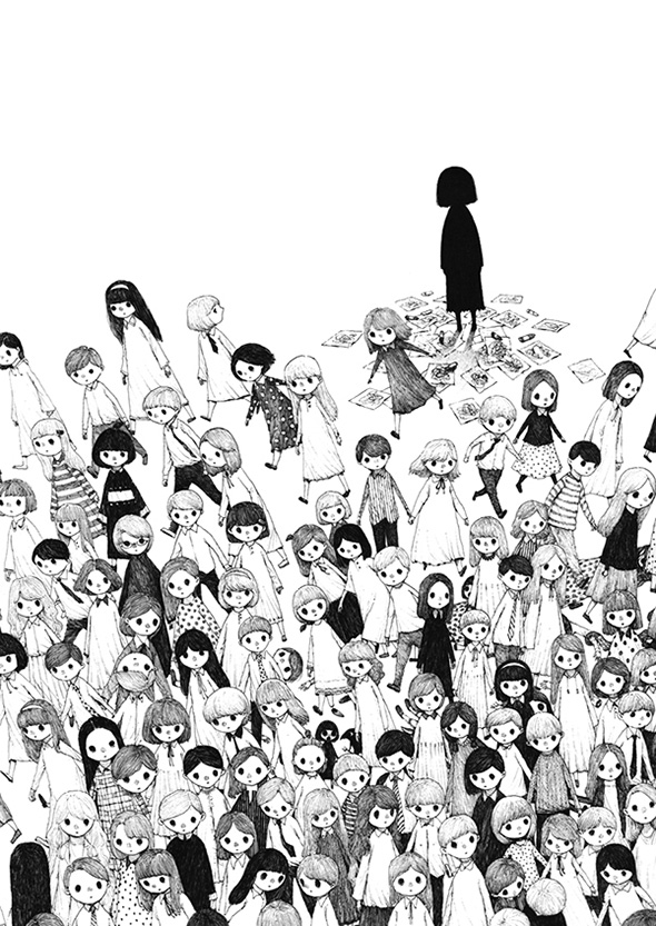 Sungwon è un disegnatore, illustratore e scrittore di Seoul, Corea. L’immaginario fiabesco emerge in maniera preponderante nei suoi lavori, che per la maggior parte sono realizzati in bianco e nero, rigorosamente a mano. Con la più tradizionale delle tecniche Sungwon riesce a sottolineare le mille sfaccettature psicologiche dei suoi personaggi, spesso ritratti in ambienti claustrofobici, saturi di oggetti, metafore della mente umana.