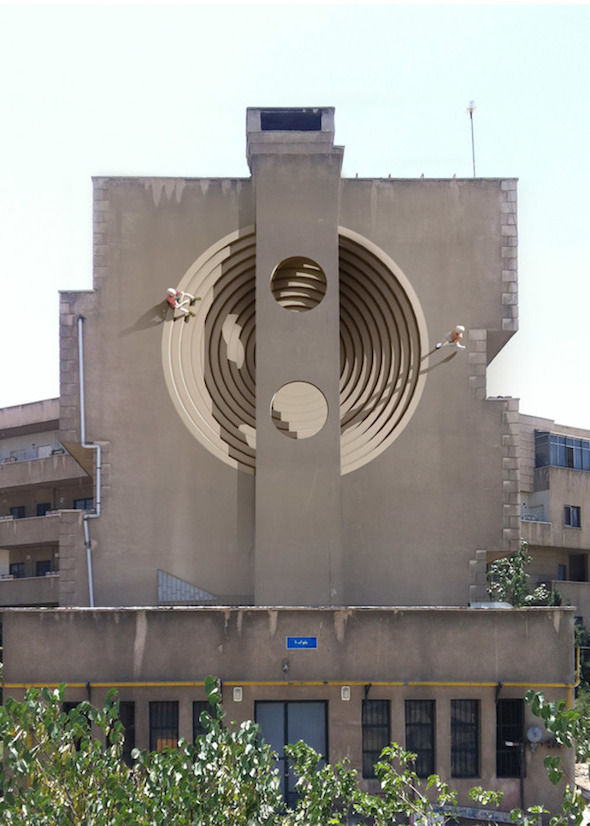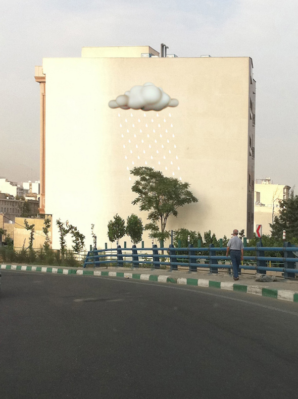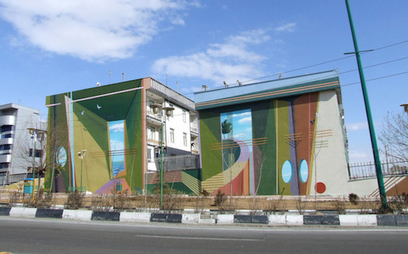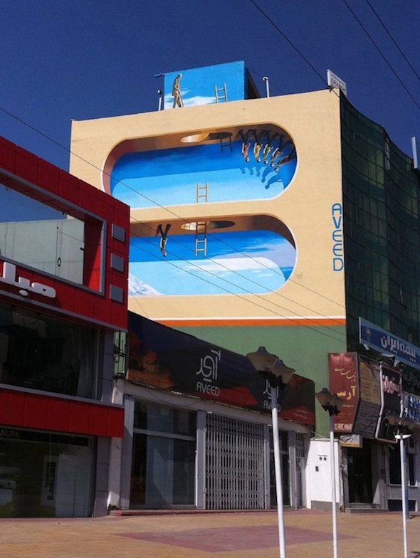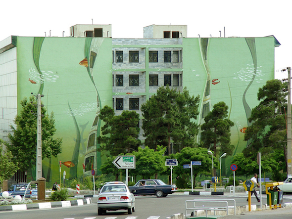 Questi incredibili murales sono opera della Blue Sky Painters di Mehdi Ghadyanloo, street-artist iraniano, e sono apparsi sui muri di Teheran con il beneplacito la stessa municipalità. Colorati, onirici, ricchi di trompe-l’oeil surreali e poetici, i graffiti ridisegnano i vecchi palazzi squadrati e spogli con prospettive inaspettate, o interagiscono con la realtà circostante migliorandone la percezione. Un’opera assolutamente urban-forward.