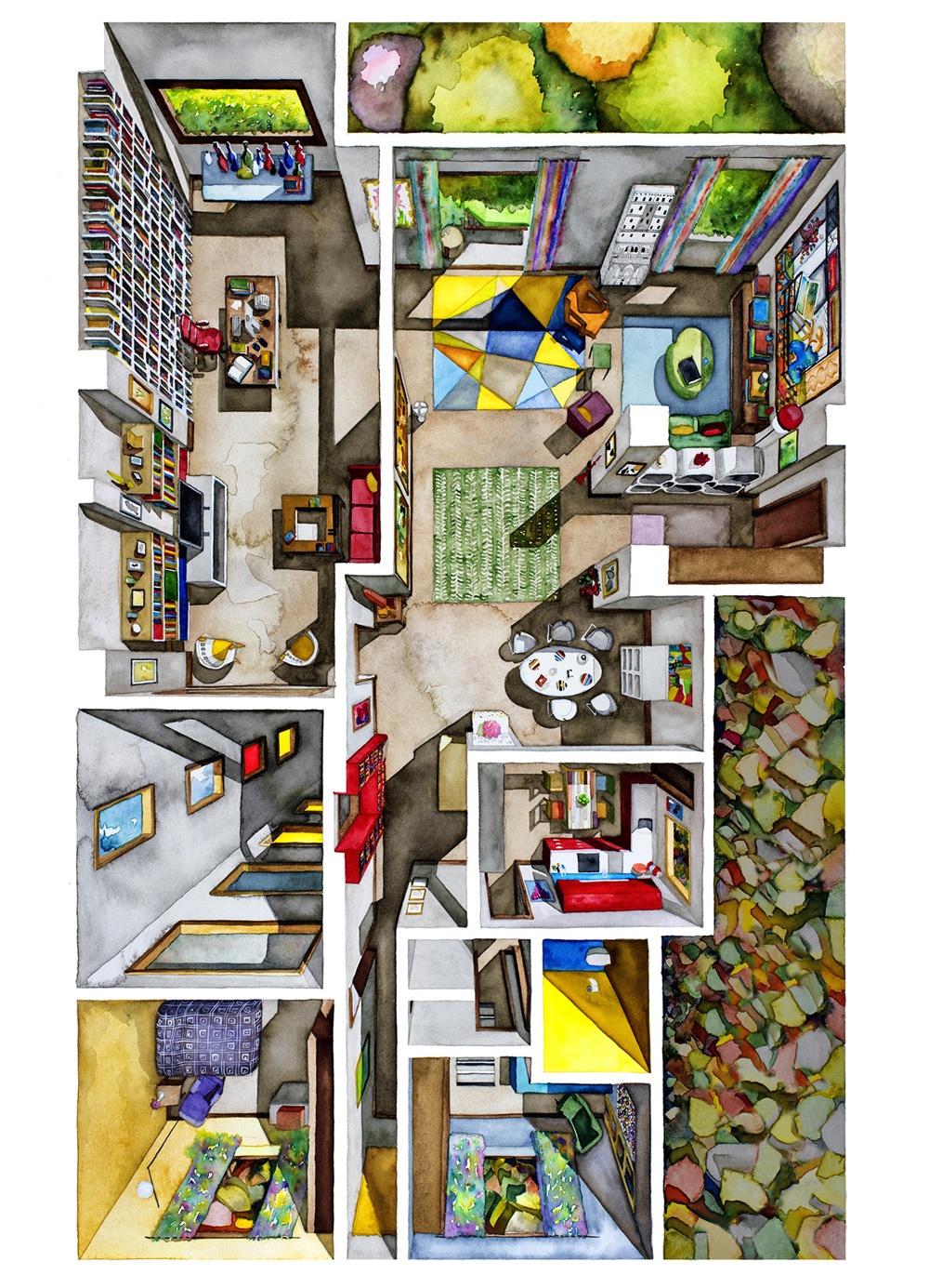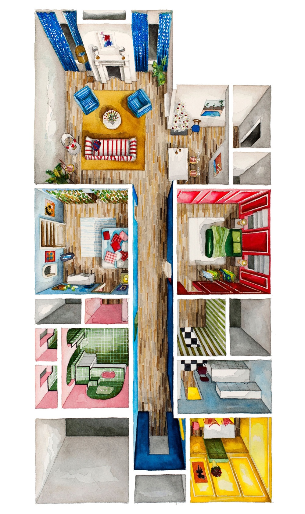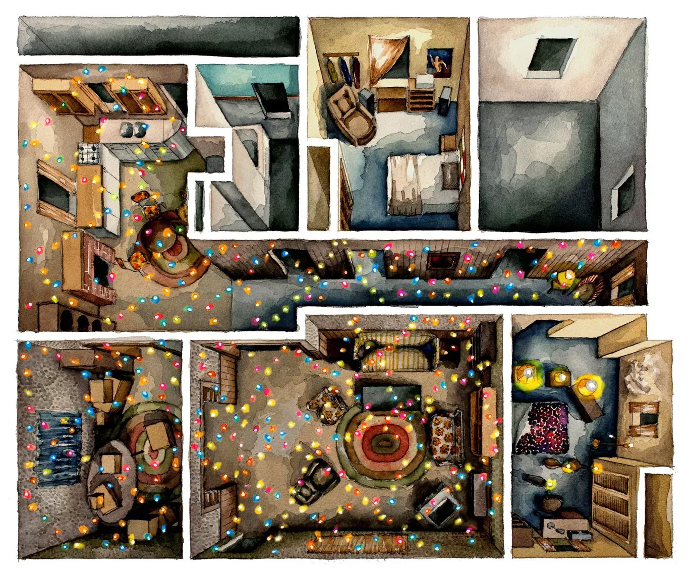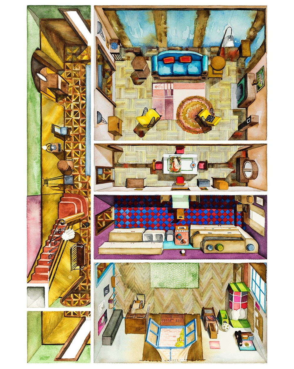 Boryana Ilieva, artista e cinefila, riproduce con matita e acquerelli le ambientazioni domestiche dei film e delle serie più famose. Da Matrix a La Grande Bellezza, passando per Eyes Wide Shut e Stranger Things.