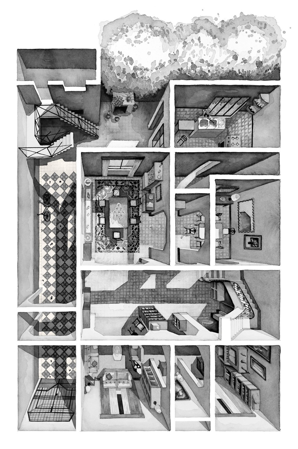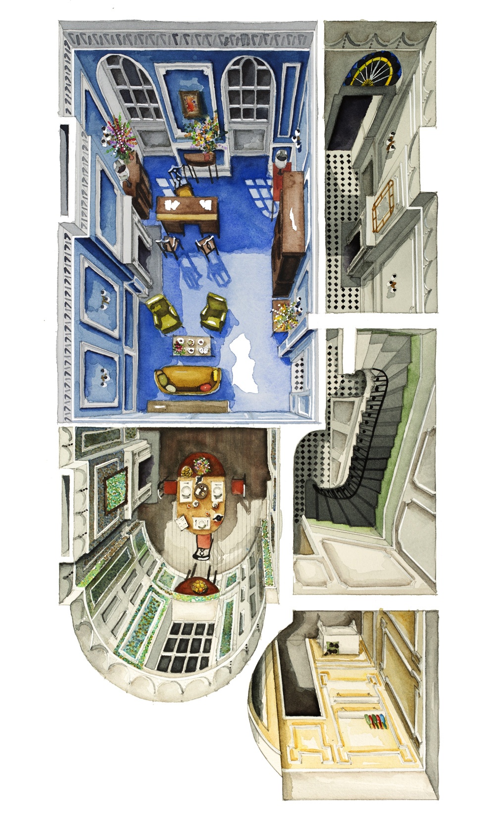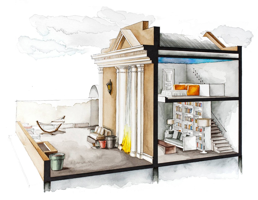 “La verità della storia è nei dettagli”, afferma lo scrittore Paul Auster, e Boryana è convinta che questo sia un modo per far rivivere lo spirito della pellicola. L’artista trascorre molto tempo a studiare le scene e a ridisegnare l’architettura degli ambienti su carta millimetrata. Non si limita a procurarsi tutta la documentazione disponibile ma contatta personalmente gli scenografi e chiunque abbia lavorato sul set. Grazie all’utilizzo della matita e dell’acquarello i suoi disegni risultano caldi e ricchi di sensibilità. Boryana confessa di avere un debole anche per le case dei registi.